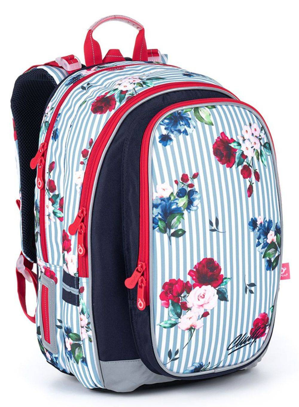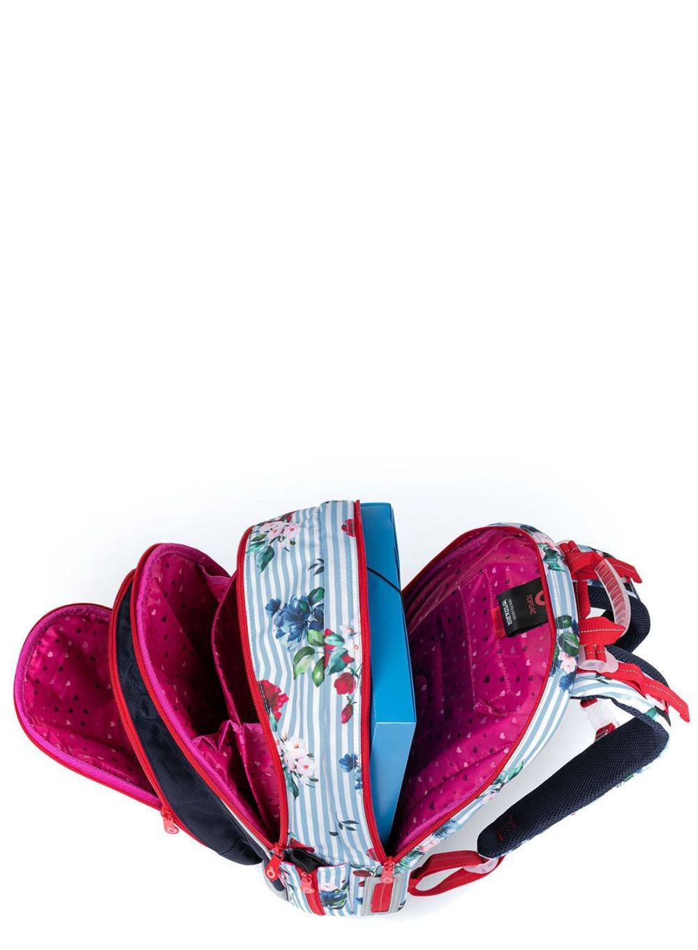 Paski, prążki i kwiaty - to hit świata mody, sprawdzi się także na plecaku szkolnym dla dziewczyn Topgal MIRA. Dzięki dużej pojemności plecak posłuży od 2 aż do 5 klasy.