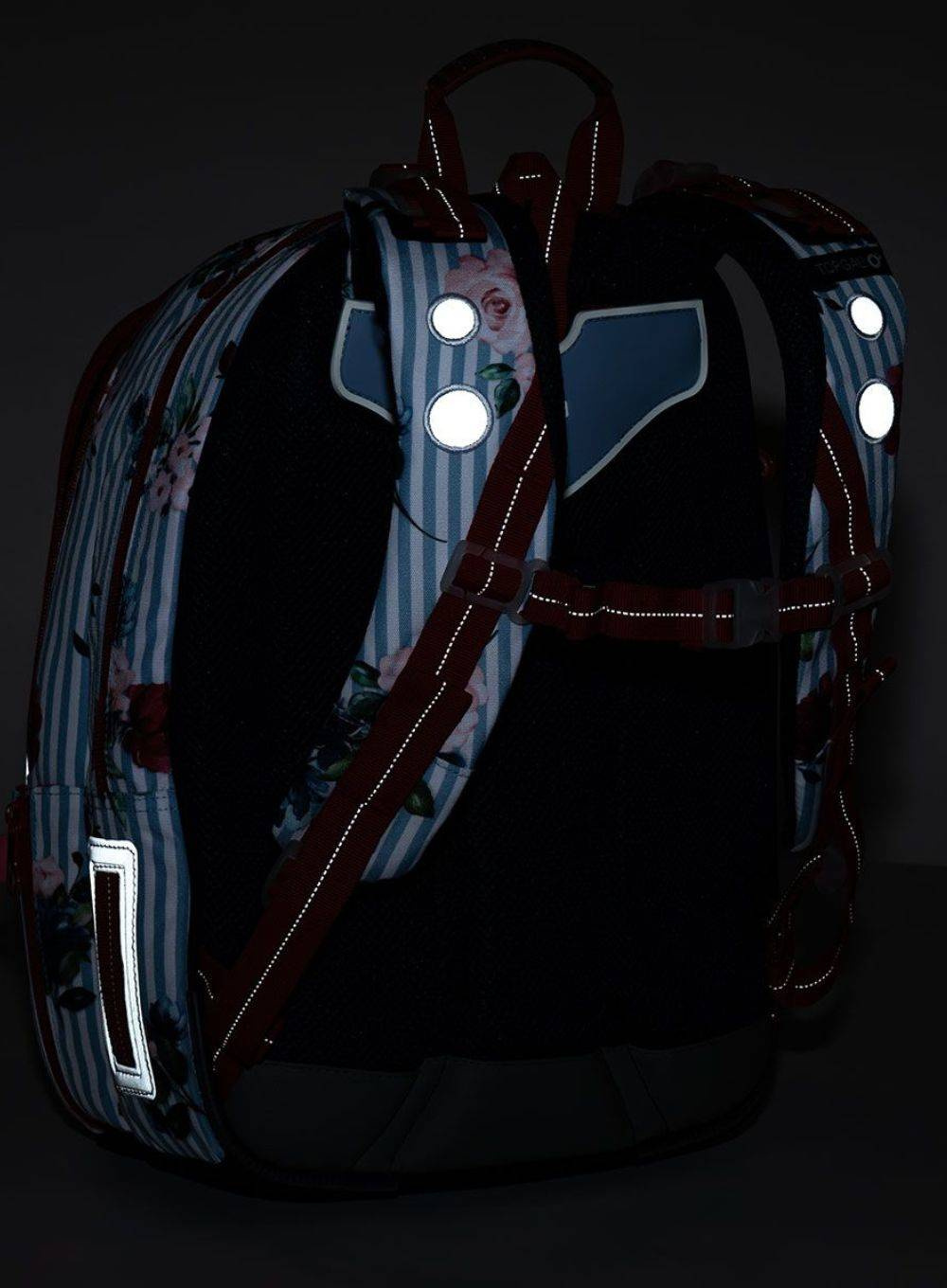 W plecaku jest specjalne miejsce na butelkę / bidon - to zewnętrzna kieszeń z boku, ukryta za zamkiem. Plecak MIRA posiada duże elementy odblaskowe, które zwiększają bezpieczeństwo i widoczność dziecka na drodze. Są to szare pola z przodu, z boków i na szelkach plecaka.