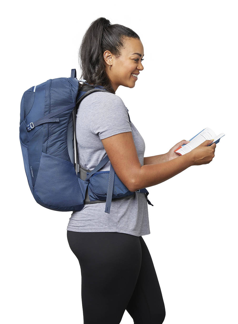 Model Juno 24 dla kobiet o pojemności, która sprawdzi się podczas jednodniowej wędrówki górskiej, ale także do codziennego poruszania się do pracy, szkoły i podczas innych rutynowych zadań. Większość niezbędnych elementów ekwipunku zmieścisz w komorze głównej, zamykanej na zamek błyskawiczny. Pozostałe drobniejsze przedmioty można spakować w kilku kieszeniach - po bokach, z przodu, a także na pasie biodrowym. Komory główna, która zamykana jest zamkiem błyskawicznym, pomieści największe przedmioty, a ponadto wewnątrz znajduje się przegroda na bukłak.