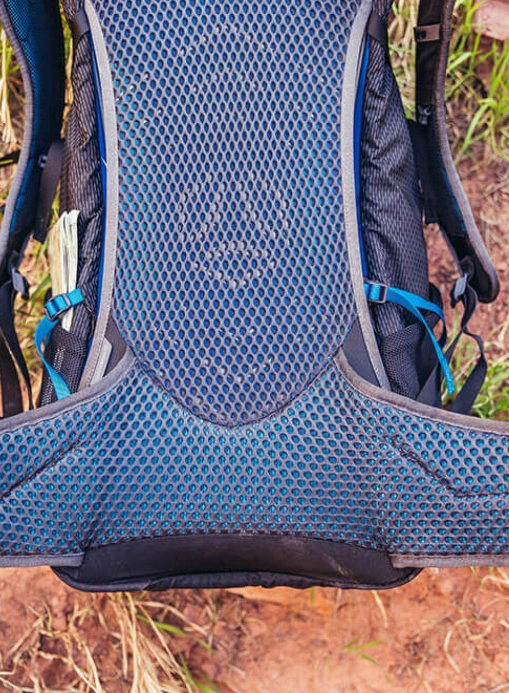 Plecak turystyczny Gregory Citro 30 wykorzystuje system nośny VaporSpan, zapewniający wysoki poziom wentylacji wokół pleców. System nośny tworzą panel z przewiewnej siateczki, rozpiętej na lekko wygiętym stelażu, pas biodrowy 3D, a także perforowane pasy ramienne z pasem piersiowym.