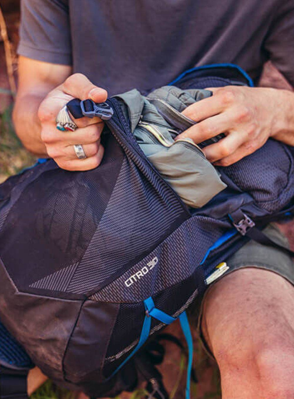 Model Citro 24 o pojemności, która sprawdzi się podczas jednodniowej wędrówki górskiej, ale także do codziennego poruszania się do pracy, szkoły i podczas innych rutynowych zadań. Większość niezbędnych elementów ekwipunku zmieścisz w komorze głównej, zamykanej na zamek błyskawiczny. Pozostałe drobniejsze przedmioty można spakować w kilku kieszeniach — po bokach, z przodu, a także na pasie biodrowym. Komory główna, która zamykana jest zamkiem błyskawicznym, pomieści największe przedmioty, a ponadto wewnątrz znajduje się przegroda na bukłak.