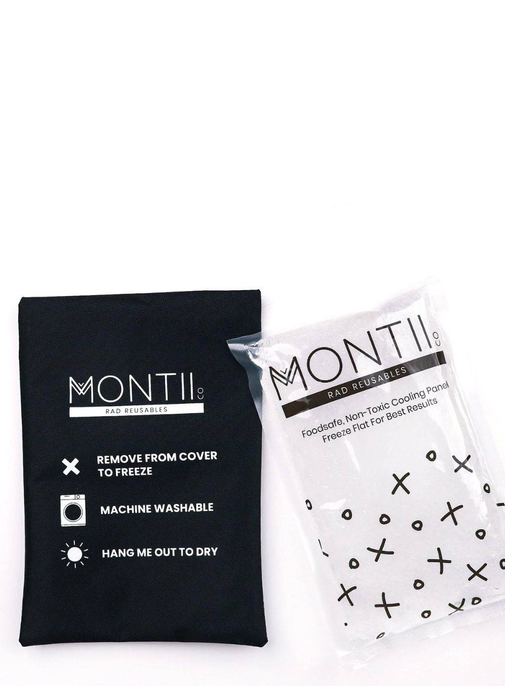 Wszystkie torby na lunch Montii są dostarczane z dołączonym woreczkiem na lód (wkładem chłodzącym). Niezależne żelowe opakowanie chłodzące zostało certyfikowane jako „bezpieczne dla żywności”. Jest dostępne we własnym, przytulnym czarnym pokrowcu i mieści się w termicznych torbach Montii.