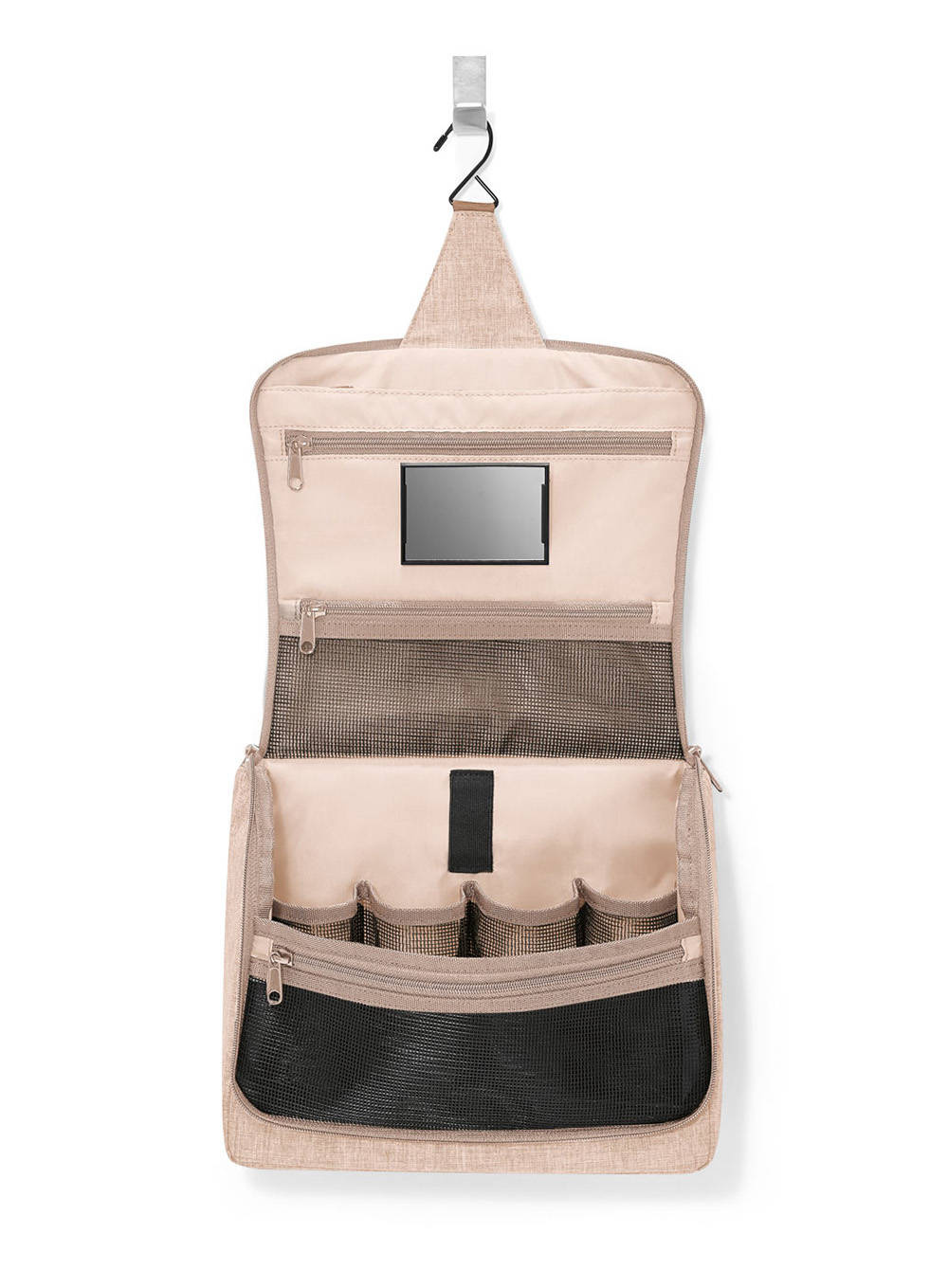Reisenthel Toiletbag XL to duża, praktyczna kosmetyczka podróżna. Przestronna komora główna jest funkcjonalnie zaprojektowana. Posiada 4 kieszenie na kosmetyki, kieszeń z siatki oraz 3 dodatkowe kieszenie zamykane na suwak. W komplecie znajduje się odczepiane na rzep lusterko. Przydatnym rozwiązaniem jest również zintegrowany haczyk do zawieszenia kosmetyczki.