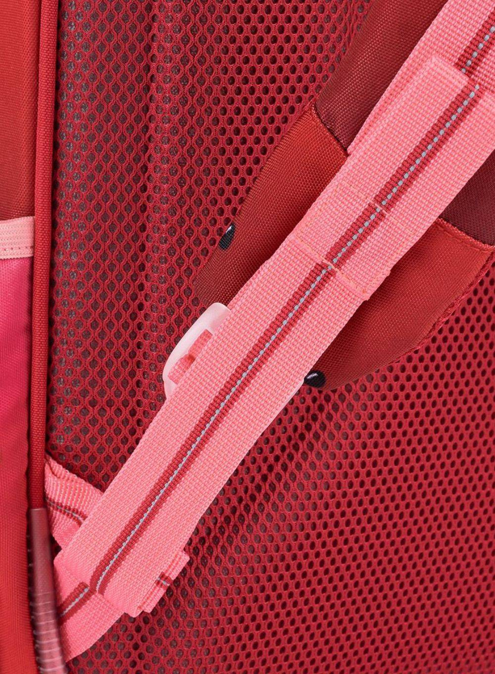Plecy w plecaku BAZI są sztywne, uformowane z utwardzonej pianki. Szelki są szerokie, miękkie i anatomicznie ukształtowane. Mają dwustopniową regulację - górna ustala odległość plecaka od pleców, a dolna wysokość na plecach. Plecak łatwo dopasujesz do drobnej sylwetki dziecka. Pas piersiowy znajdujący się na szelkach można wyregulować lub zdjąć. Pomoże on ustabilizować szelki, więc nie będą się zsuwać z wąskich ramion dziecka.