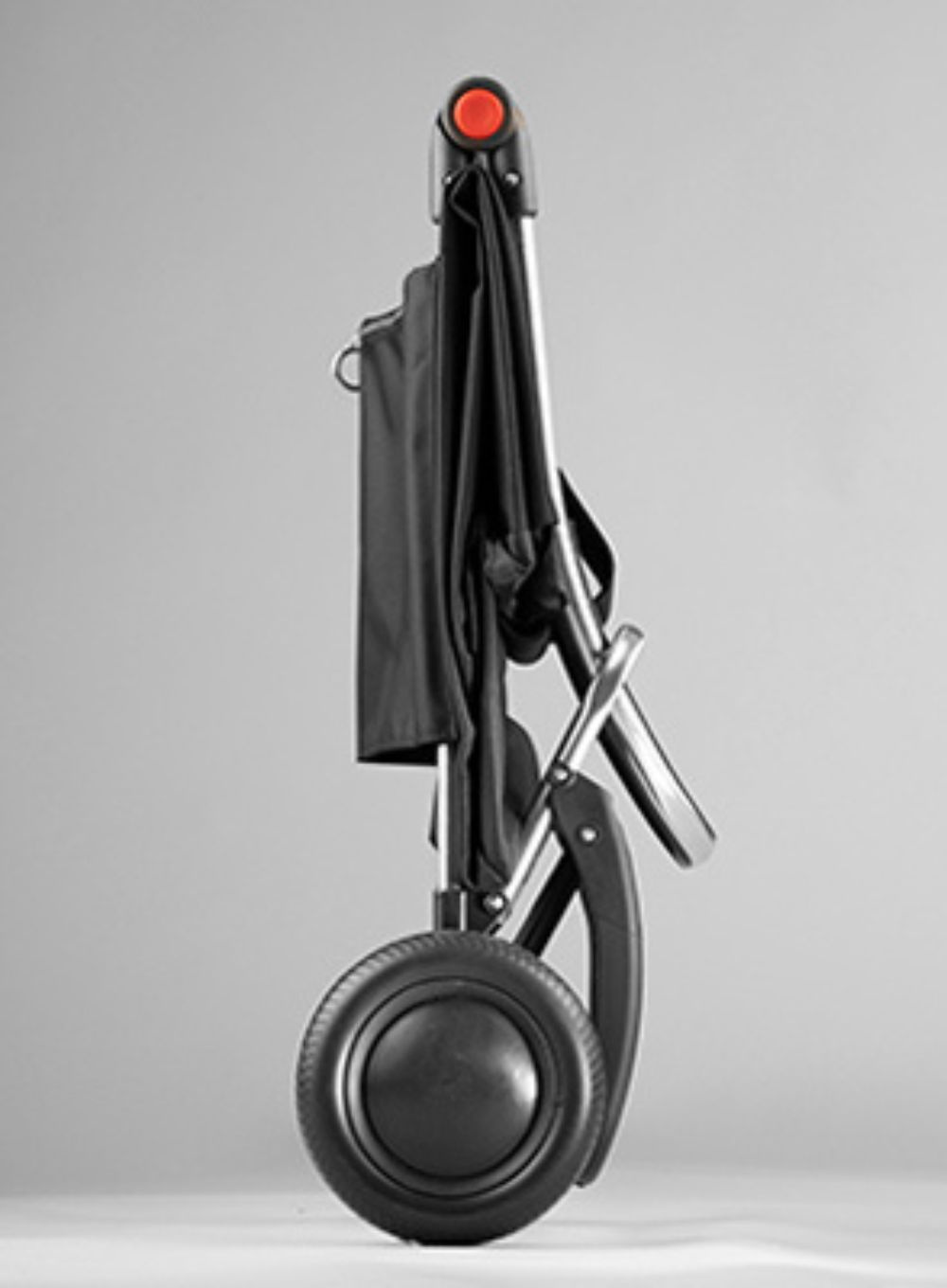 - Użyteczna, w prosty sposób składana podpórka do postawienia wózka w miejscu umożliwia również składanie wózka na płasko, przez co łatwo się go przechowuje