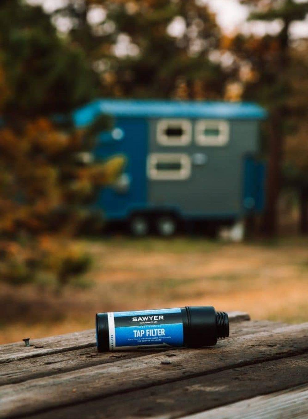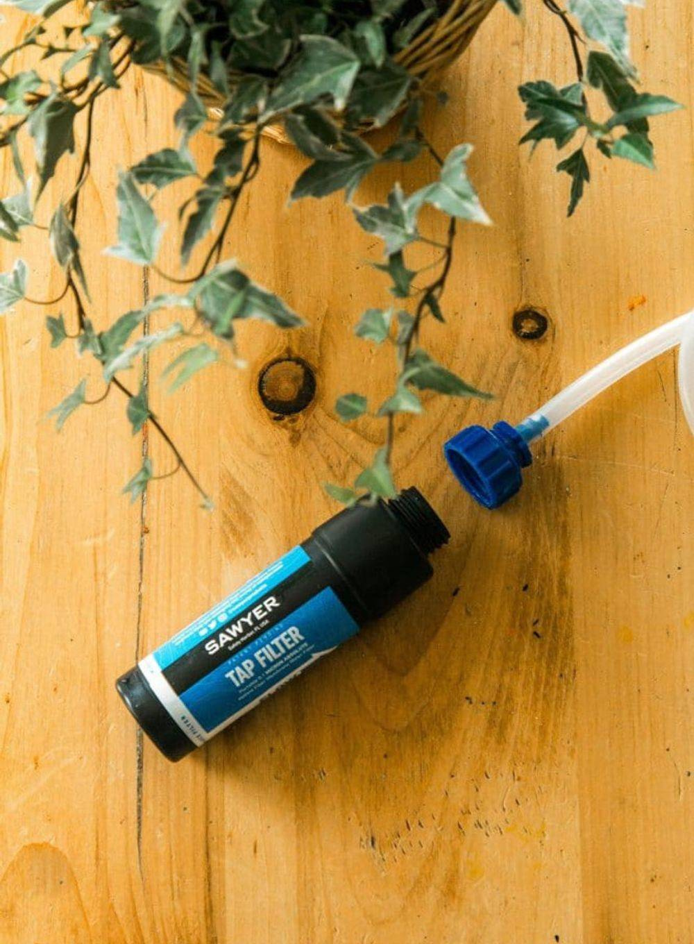 Sawyer Tap Filter to dobry wybór dla każdego, kto szuka łatwego w użyciu filtra. Większość filtrów do wody wykorzystuje grawitację do filtrowania, ale ten od Sawyera pasuje do kranu i wykorzystuje ciśnienie wody. Po prostu przykręcasz go do kranu, ostrożnie otwierasz kran i voilà, masz czystą wodę pitną. Pasuje do kranów o średnicy 17-20 mm. Możesz również użyć dołączonego węża do napełnienia butelki, ale niekoniecznie. Nie możesz pozostawić filtra na stałe w kranie, a od czasu do czasu trzeba go również przepłukać (przepłukać go do czysta, przepuszczając przez niego wodę). Adapter do płukania jest dołączony w zestawie.