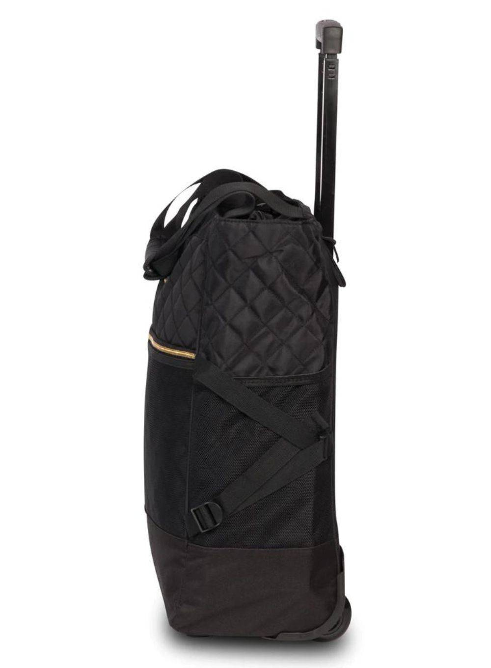 Torba na kółkach / wózek na zakupy Punta Wheel CLASSY ma praktyczny, szeroki otwór w komorze głównej, który ułatwia wkładanie i wyjmowanie rzeczy, a na każdy zakup jest dużo miejsca. Punta Wheel Classy to model dostępne w eleganckich kombinacjach kolorystycznych, wykonany z pikowanej tkaniny poliestrowej, wykończony złotymi dodatkami.