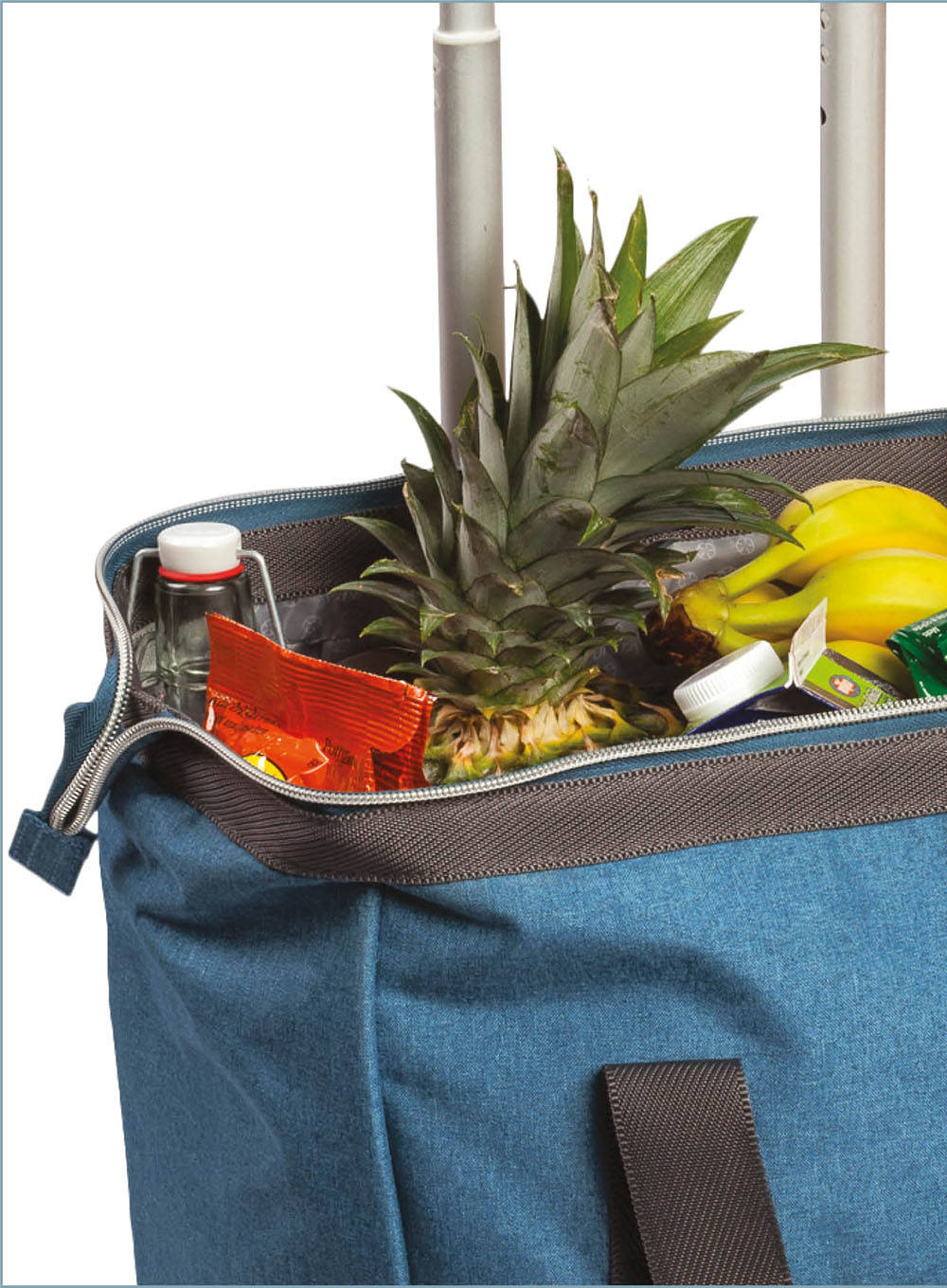 Elegancki wózek na zakupy Punta Big Wheel ze specjalnie opracowanymi kołami XL toczy się prawie sam - jest cichy i przyjemny! Dzięki wyjątkowo szerokiemu otwarciu jest wystarczająco miejsca na duże zakup.