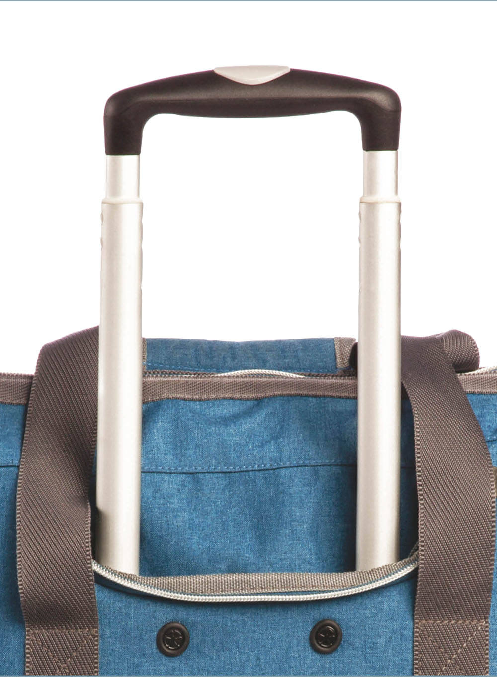 • Teleskopową rączkę można całkowicie schować w tylnej kieszeni zapinanej na zamek