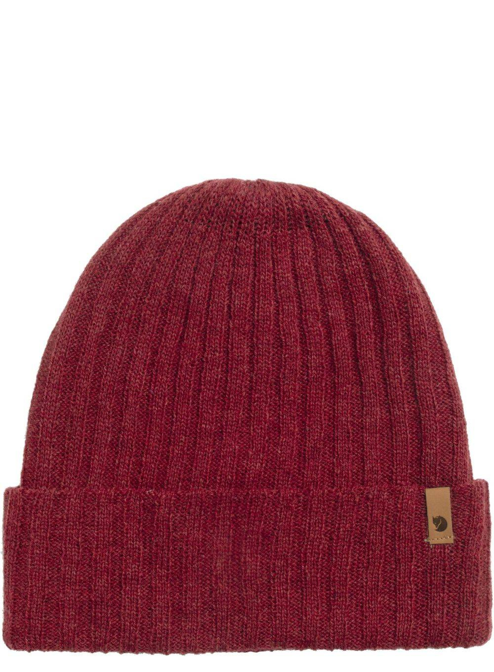 Prążkowana czapka z dzianiny z owczej wełny Fjallraven Byron Hat Thin. Skórzane logo z boku, na wywijanym mankiecie.