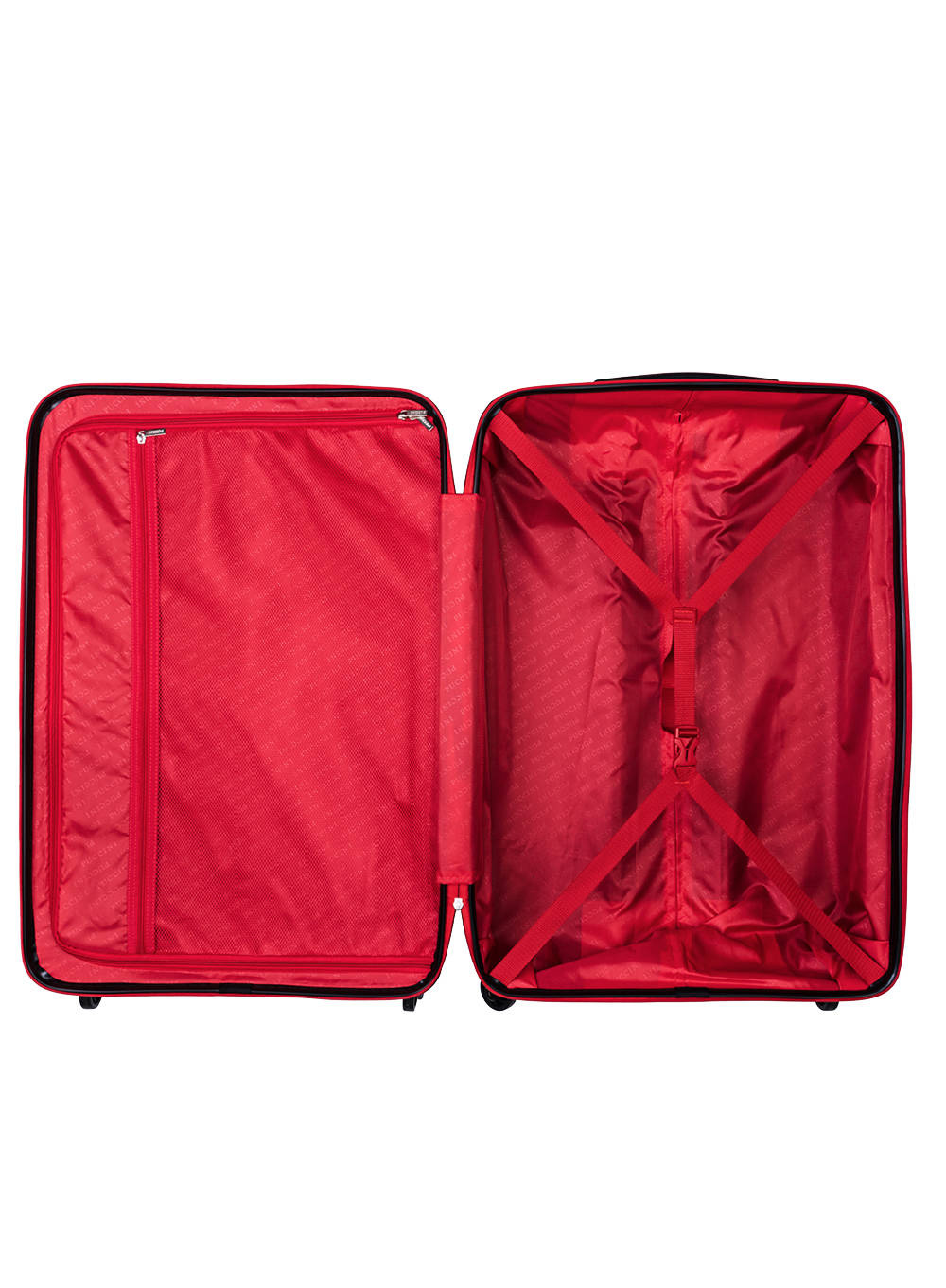 Wewnątrz walizek umieszczono regulowane pasy krzyżowe utrzymujące garderobę, uniemożliwiające przesuwanie się ubrań i rzeczy osobistych.
