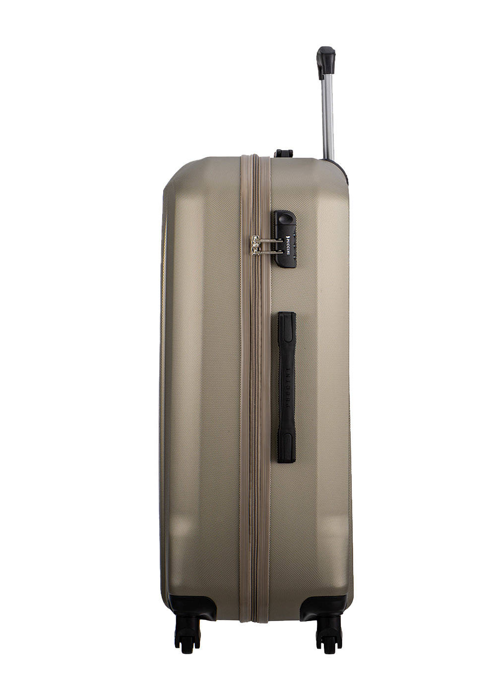 Walizka posiada regulowany uchwyt teleskopowy oraz cztery zwrotne kółka, dzięki czemu możesz ją swobodnie ciągnąć obok siebie. Wszystkie walizki Puccini posiadają koła wykonane z tworzywa sztucznego z domieszką kauczuku, co sprawia, że walizka nie hałasuje, a koła są wytrzymałe i zwiększają wygodę prowadzenia.