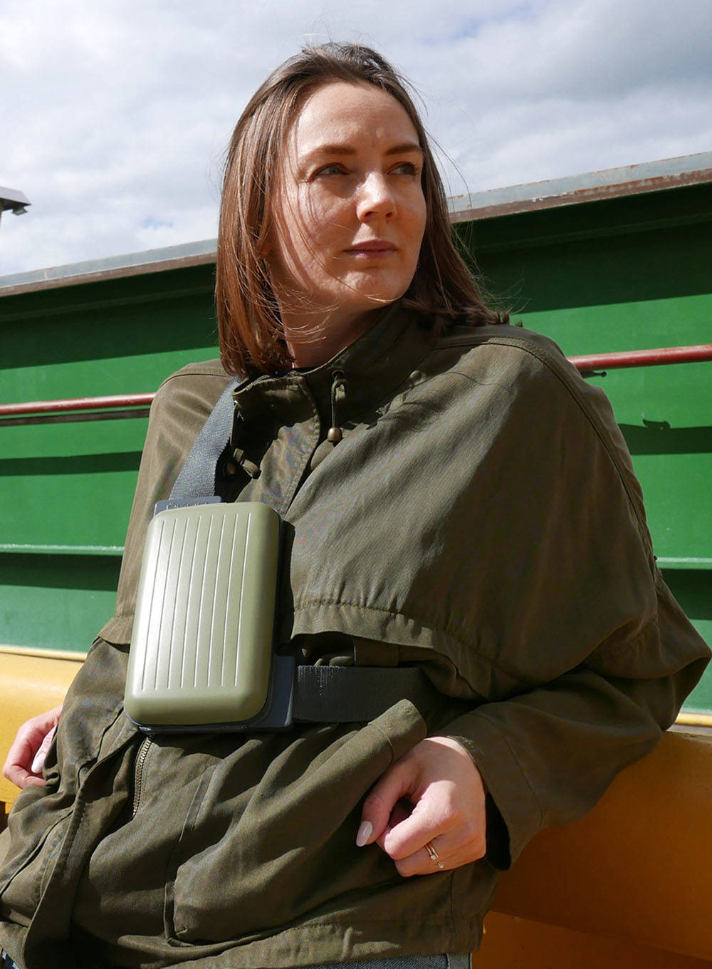 • Wygodny w noszeniu dzięki regulowanemu pasowi