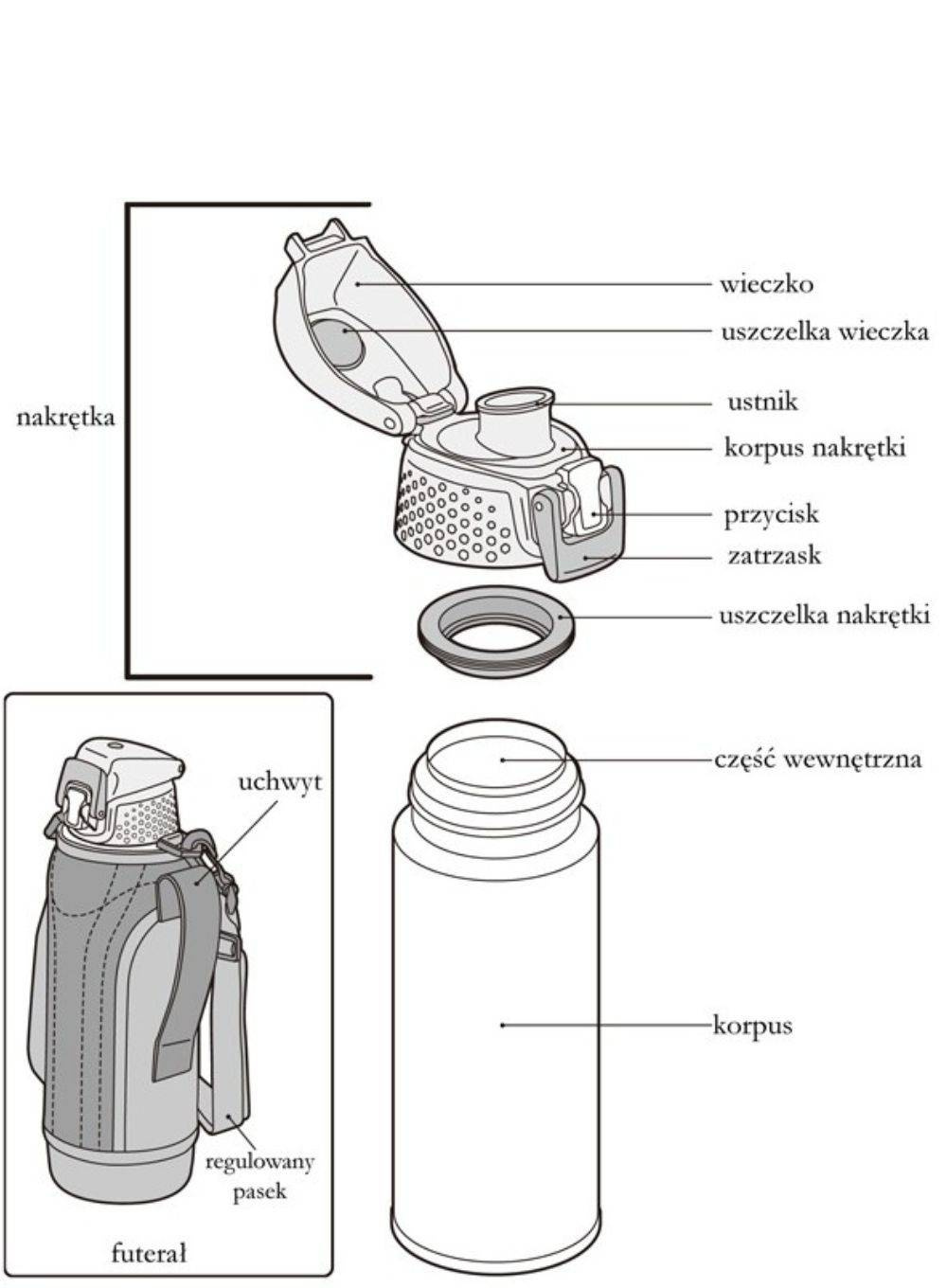 Futerał dostarczany jest razem z termosem. Na boisko możesz zabrać tylko termos, nie potrzebujesz plecaka. Termos możesz trzymać w ręce za uchwyt lub nieść na ramieniu. Nie trzeba zdejmować futerału podczas picia napoju.