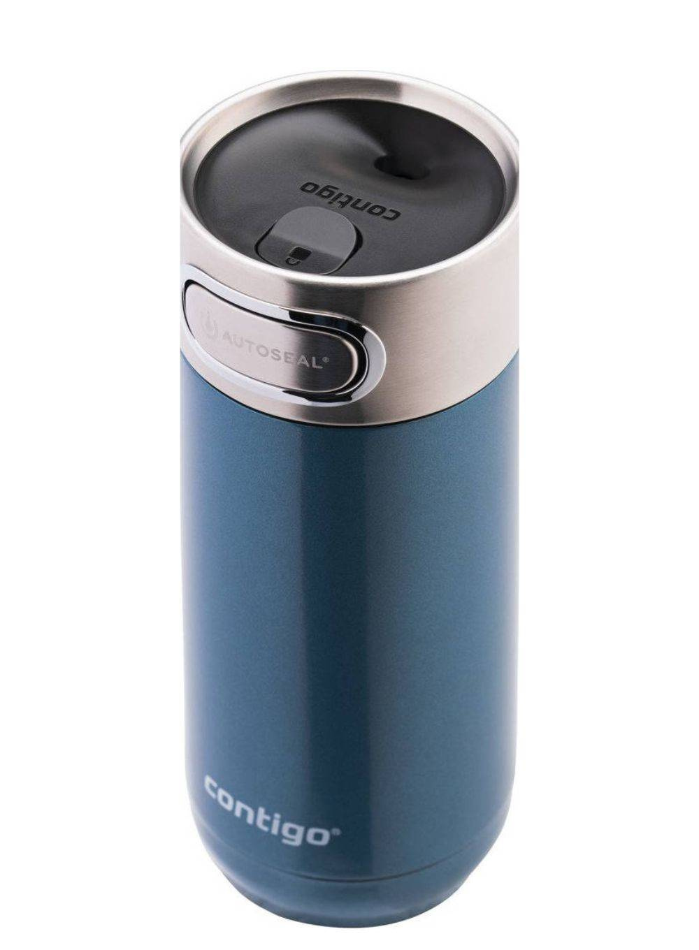 Kubek termiczny Contigo The Luxe dzięki opatentowanej technologii AUTOSEAL® jest w pełni szczelny Jednym przyciskiem w pokrywie otwierasz i zamykasz. Skuteczny sposób na uniknięcie rozlewania napoju.