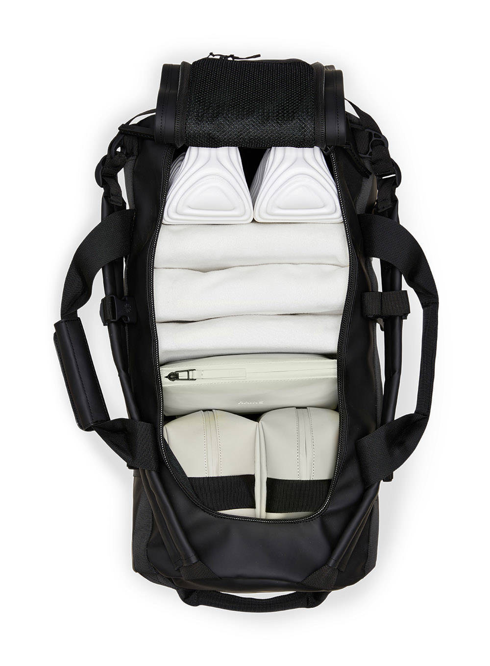Rains Duffel Bag Small to hybrydowa torba podróżna, sportowa, której można używać na co dzień bez względu na pogodę.