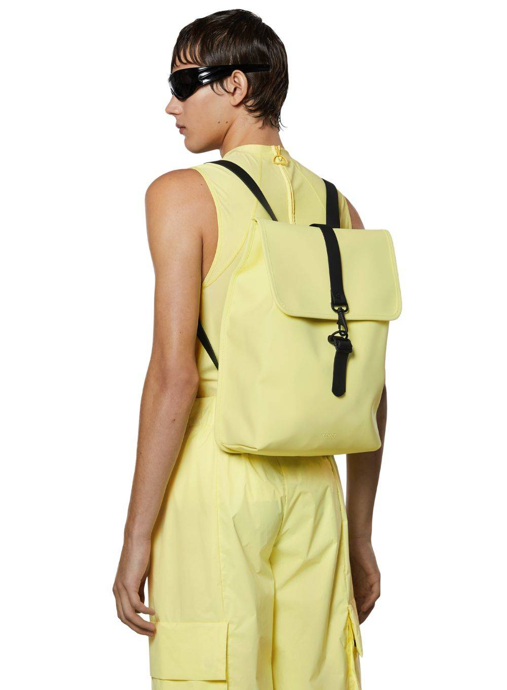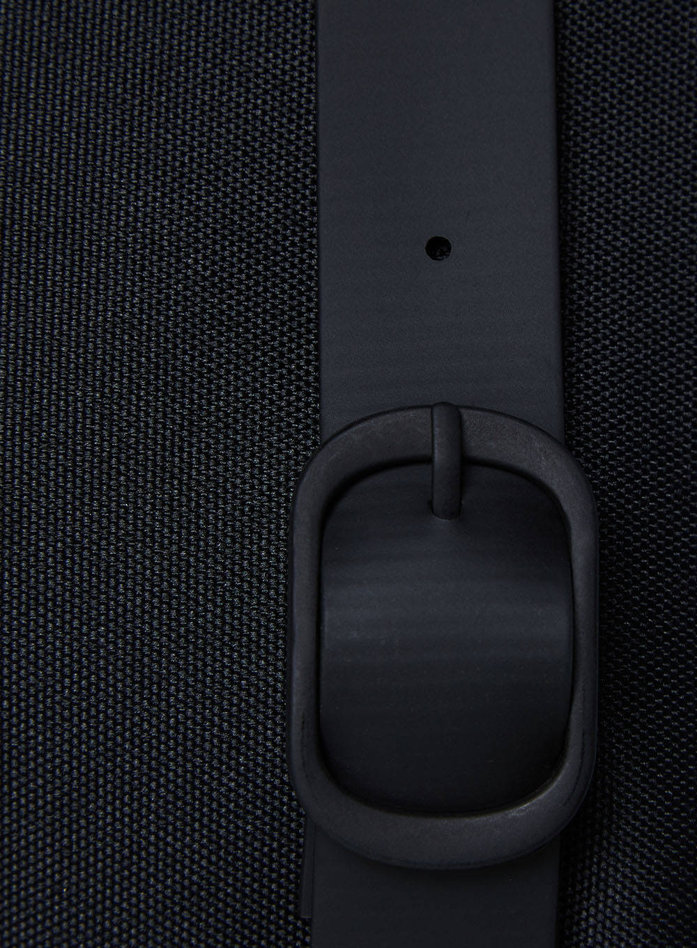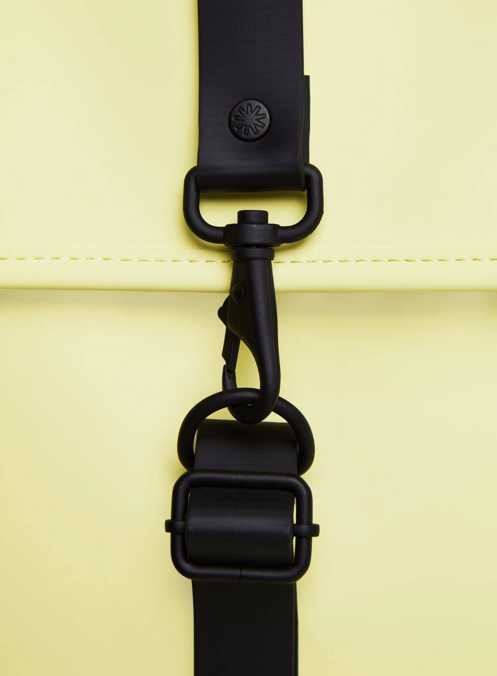 Plecak Rucksack Rains wyglądem przypomina klasyczny model plecaka Backpack. Posiada charakterystyczny przedni pasek z TPU i zapięcie na karabińczyk na prostokątnym korpusie.