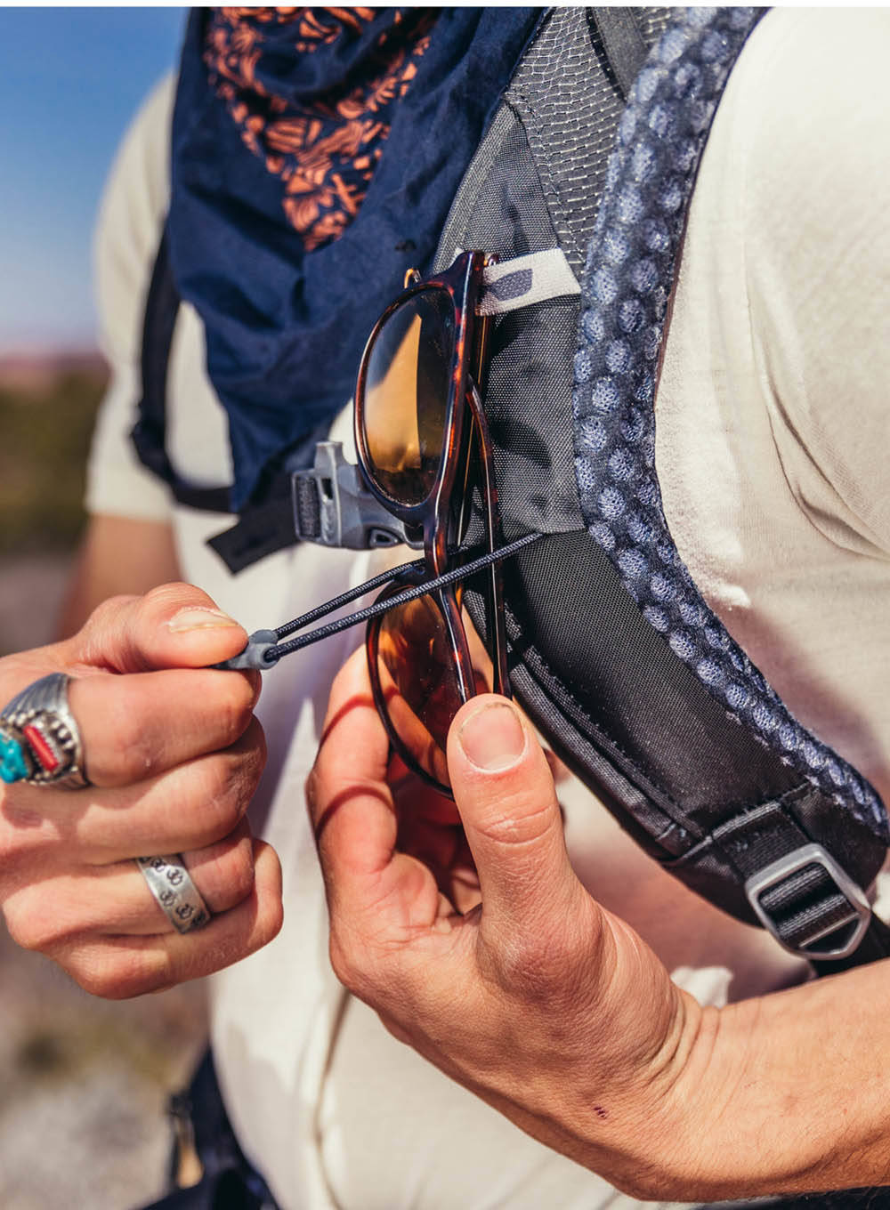• System mocowania okularów przeciwsłonecznych QuickStow na pasie ramiennym zapewnia szybki, bezpieczny i wolny od zarysowań dostęp do okularów