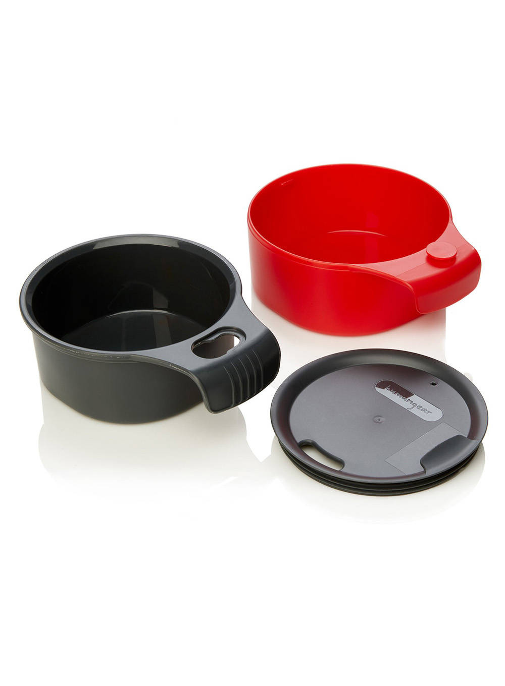 Uniwersalny i funkcjonalny kubek Humangear cupCup można używać jako dwie osobne filiżanki lub razem jako kubek izolowany. W trybie izolowanym kubka można używać ze szczelną, wciskaną pokrywką, która zapobiega rozlaniom napoju.