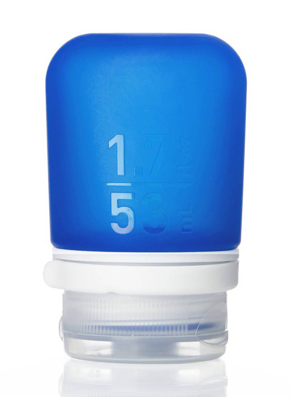 Silikonowa butelka Humangear GoToob+ S o pojemności 53 ml na płyny, kremy, żele. Bezpieczna dla artykułów spożywczych.