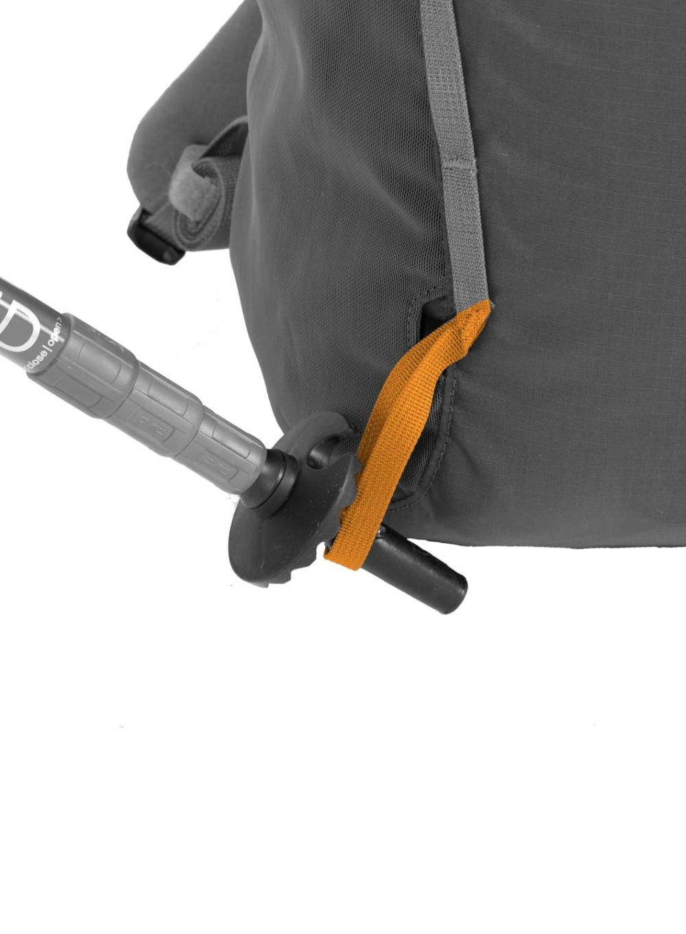 Zwijane zamknięcie nie tylko niezawodnie chroni przed deszczem, ale także zapewnia szybki dostęp do komory głównej. Dwie rozciągliwe kieszenie boczne i łańcuchy daisy z taśmy pozwalają na dodatkowe przechowywanie i mocowanie sprzętu i innych przedmiotów.