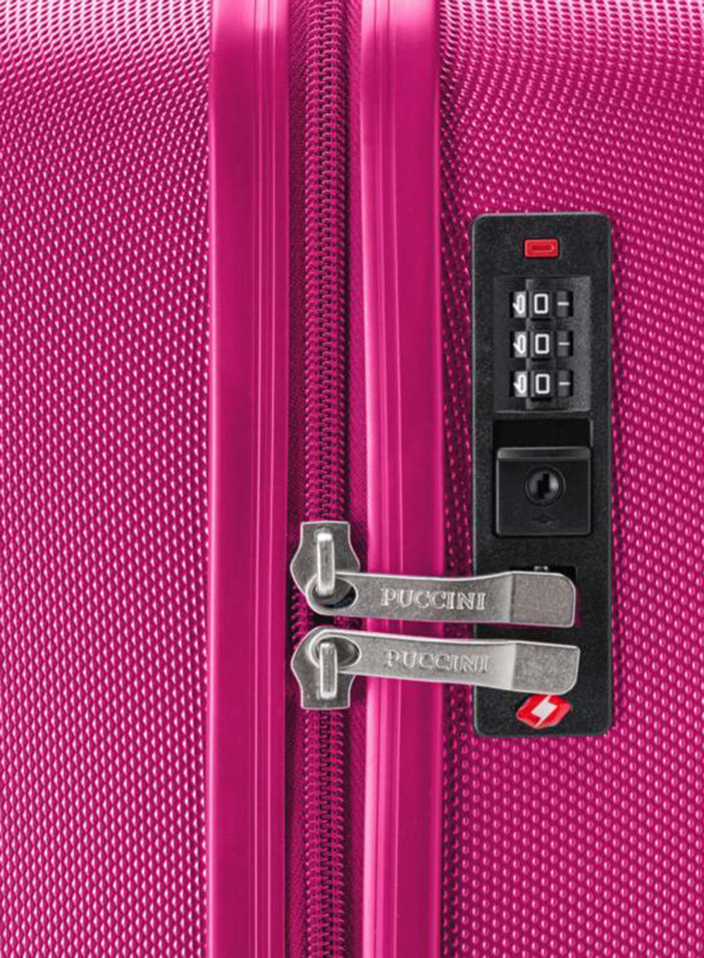 Duża, twarda walizka z ABS Puccini Bali o nowoczesnym wyglądzie, ze zwrotnymi kołami i zamkiem szyfrowym TSA.