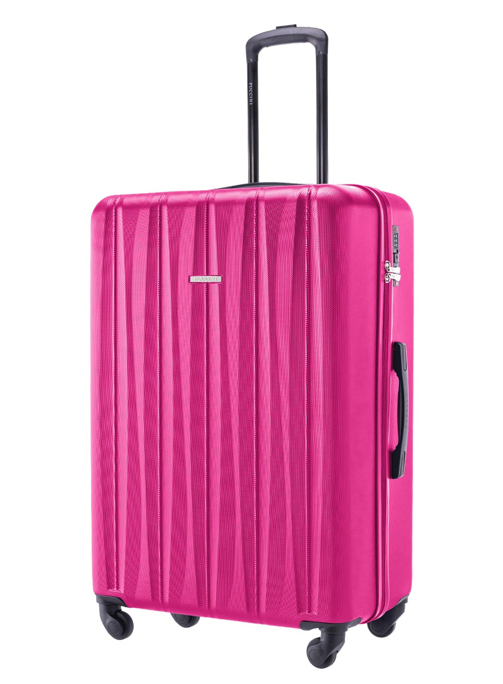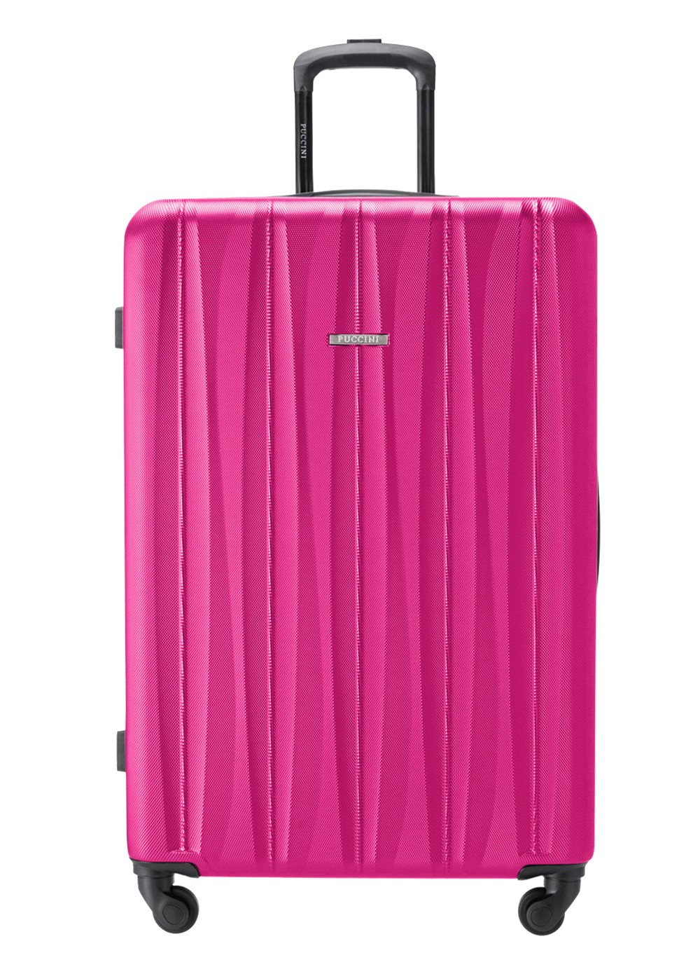 Duża walizka Puccini Bali charakteryzuje się klasyczną formą z efektownym, nowoczesnym designem. Z przodu walizki znajdują się ozdobne pionowe żłobienia oraz srebrna blaszka z nazwą producenta.