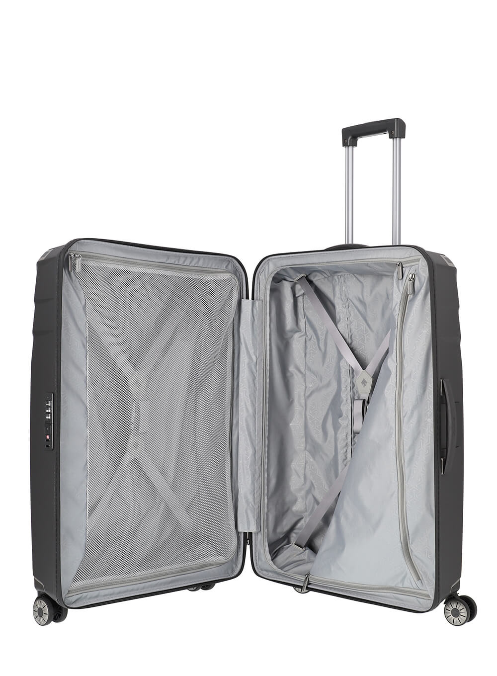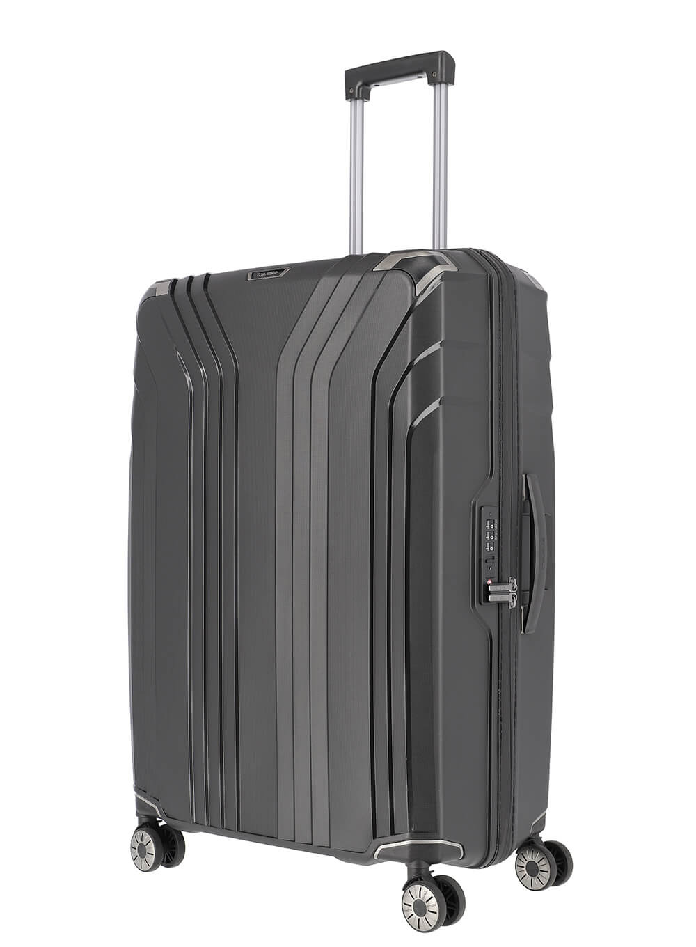 Charakterystyczne połączenie formy i funkcji duża walizka Travelite Elvaa o pojemności 102 l.
