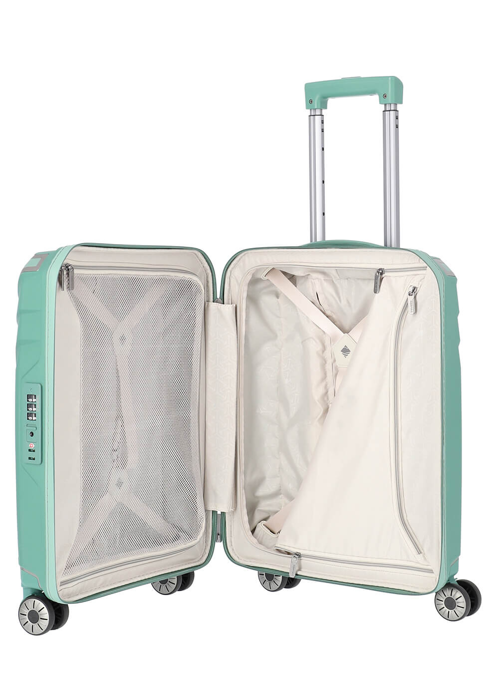 Wizualnie i naturalnie dzięki swoim wspaniałym cechom, takim jak wewnętrzna podszewka z recyklingu i niezrównana wytrzymałość. Mała walizka, która z łatwością wytrzyma wszystkie trudy i wyzwania kolejnych podróży.