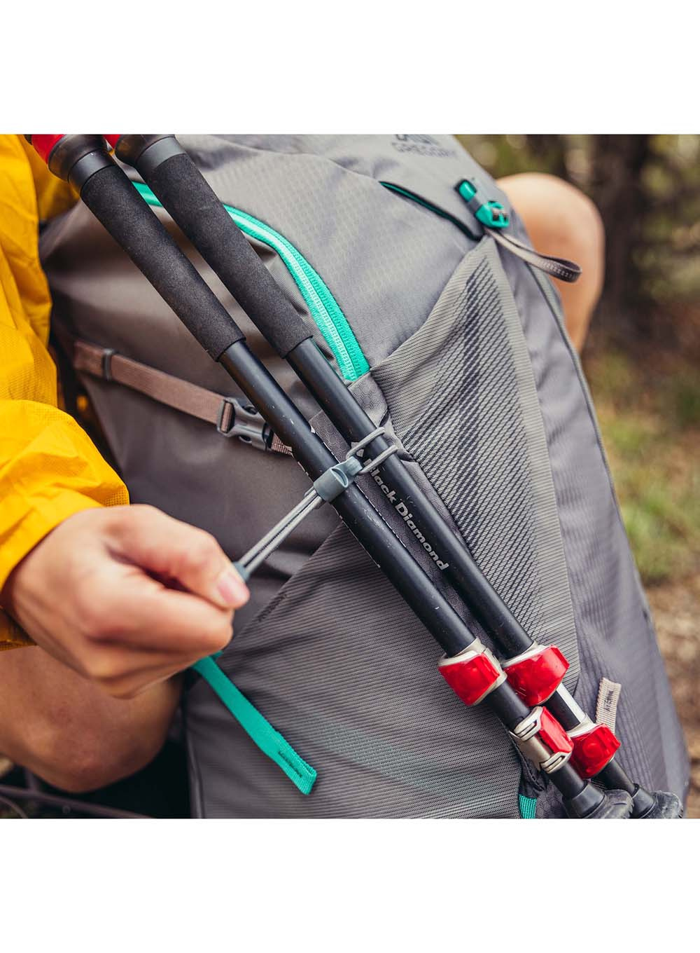 • Regulowana pętla mocująca i górna blokada przeciwwstrząsowa do kijków trekkingowych lub czekana