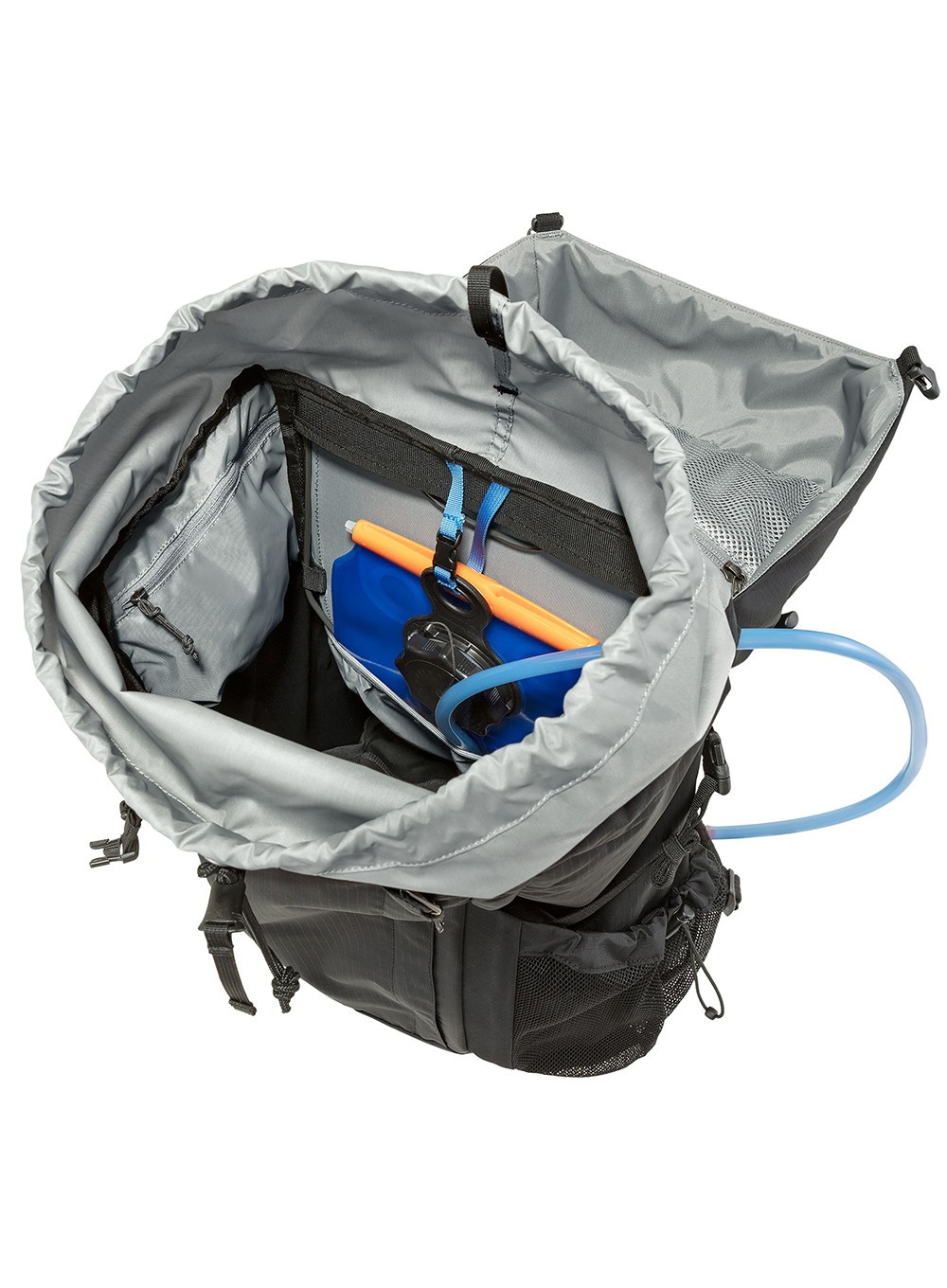 Z przodu plecaka znajduje się mocowanie na kijki trekkingowe lub czekan. Plecak jest kompatybilny z systemem hydracyjnym i ma dołączony pokrowiec przeciwdeszczowy.