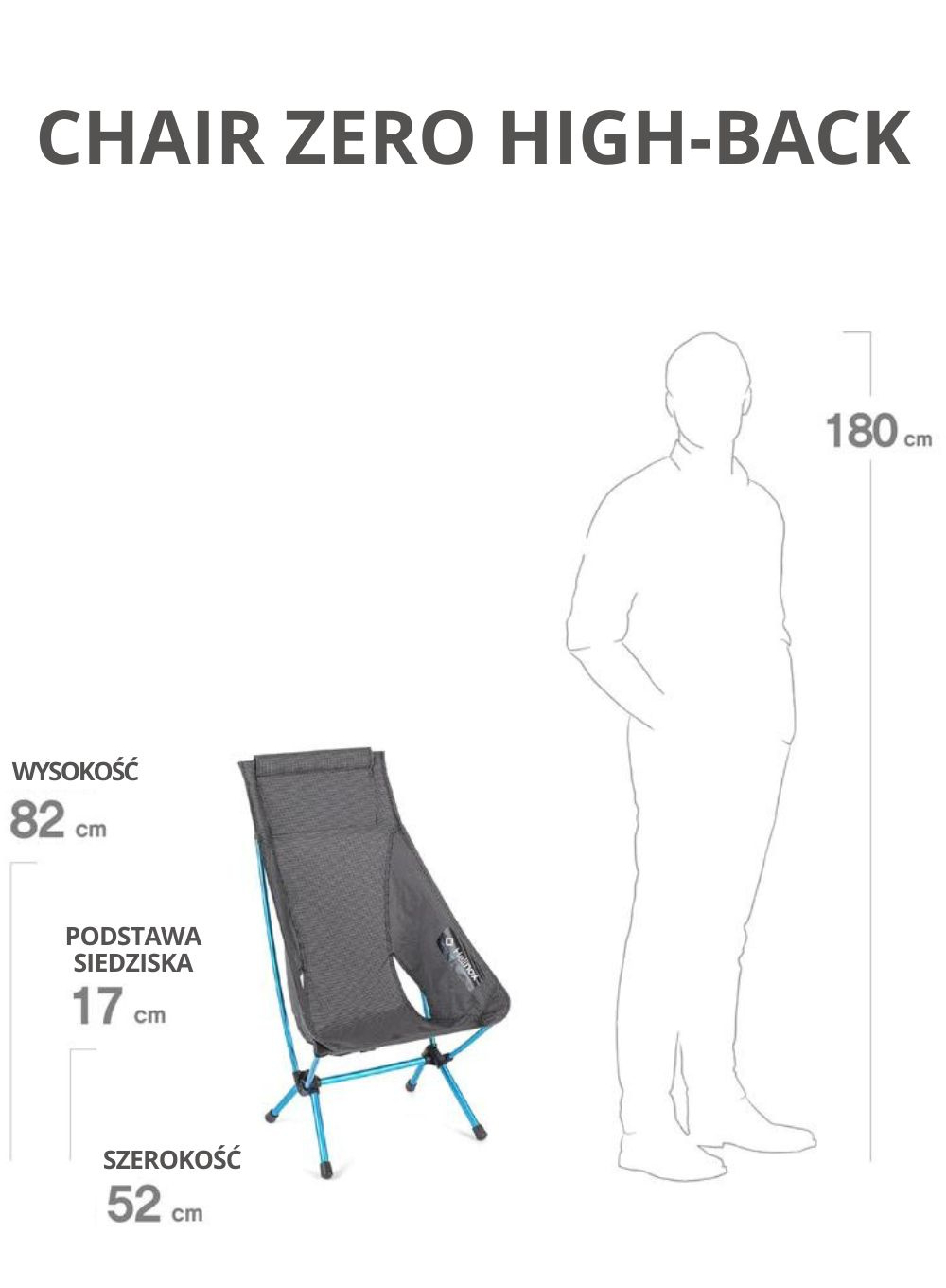 Krzesło Helinox Zero High-Back jest lekkie, kompaktowe, wytrzymałe i wygodne. Jest to najlżejszy model w ofercie Helinox: 690 g z pokrowcem. Wytrzymałość: 120 kg!