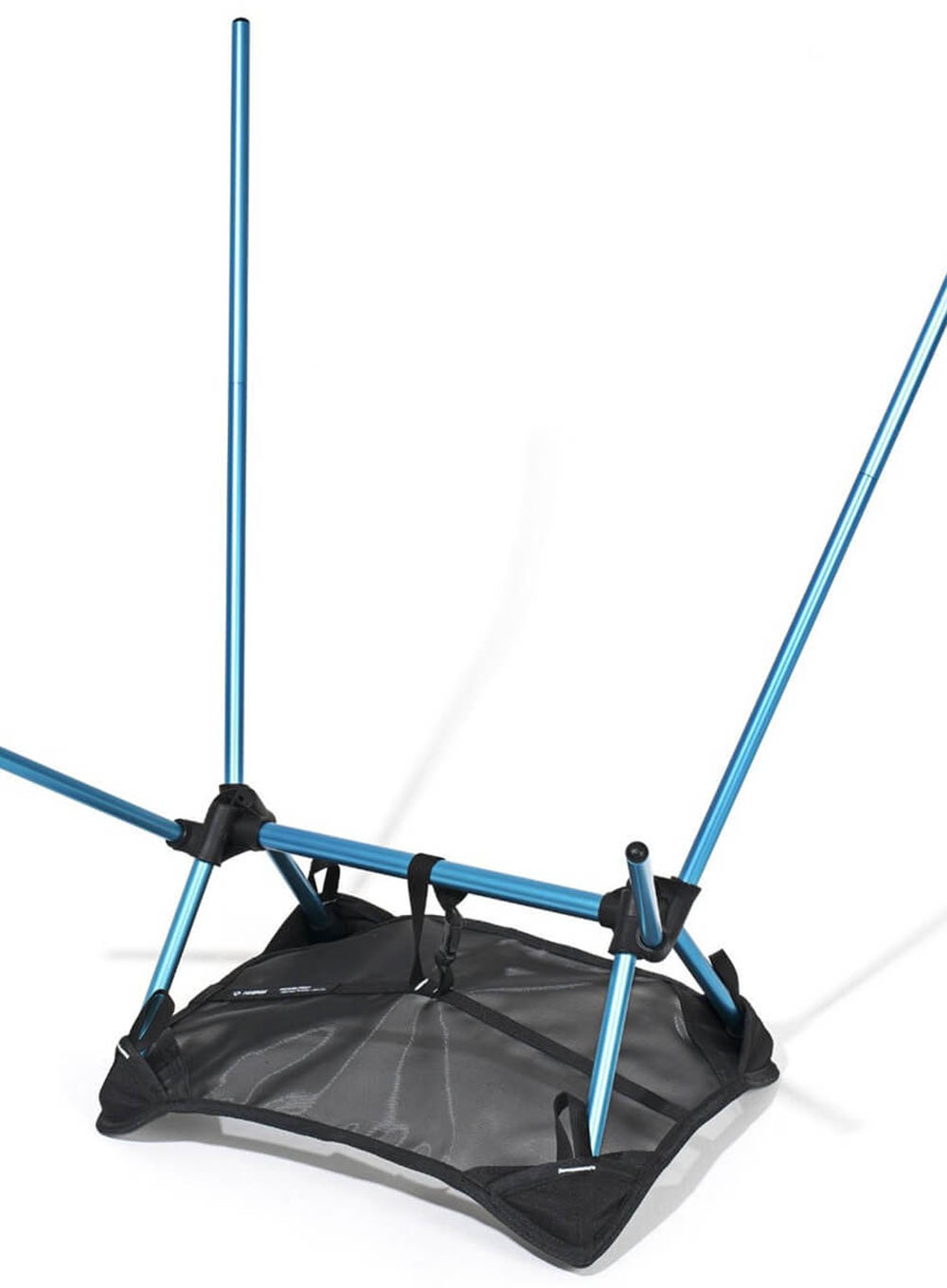 Podkładka pod nogi krzesła Helinox Ground Sheet Chair Zero zapewnia stabilność na nierównej i grząskiej nawierzchni. Nogi krzesła nie zapadają się, gdy stoi na piasku lub miękkim podłożu.