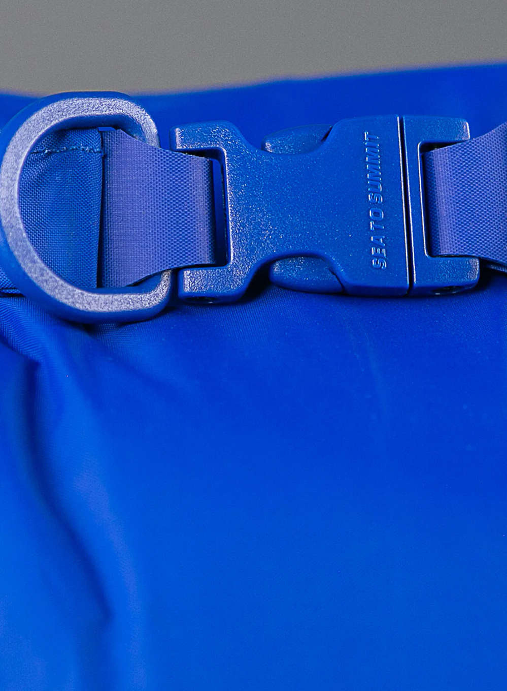 - Każdy worek ze zwijanym zamknięciem musi być prawidłowo zamknięty, aby woda nie przedostała się do środka: zacznij od zagięcia paska Hypalon™ w pierwszej kolejności i upewnij się, że masz co najmniej trzy rolki (zrolowałeś 3 razy) przed zamknięciem klamry