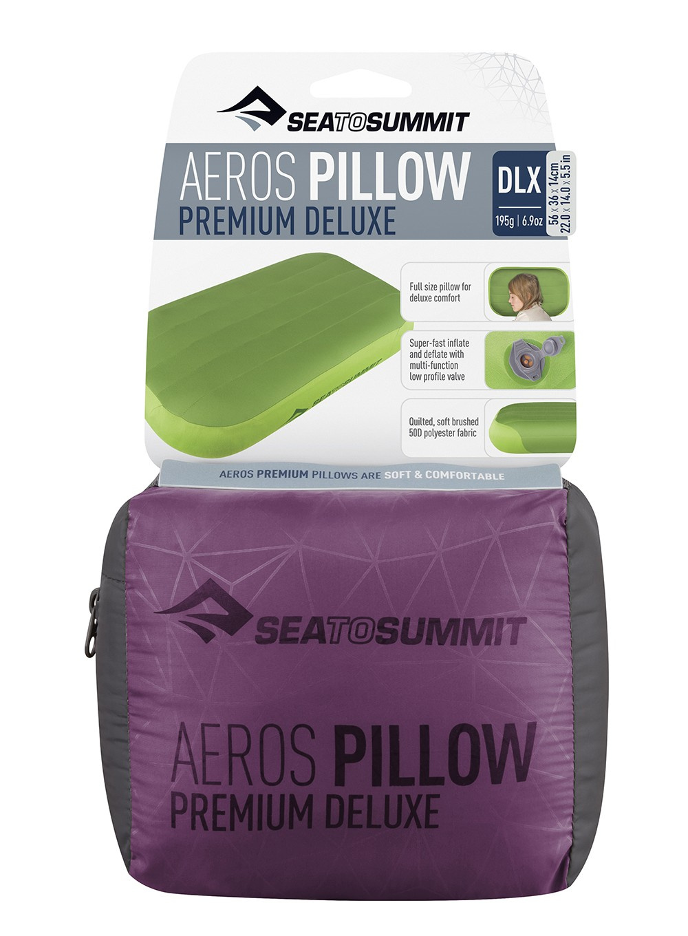 Poduszka Sea To Summit Aeros Pillow  Premium Deluxe zapewnia komfortowy sen i odpoczynek podczas każdej wyprawy, na kempingu, czy w trakcie długiej podróży samochodowej. Niewielka waga poduszki i jej kompaktowy rozmiar po spakowaniu sprawiają, że zmieści się w każdej torbie podróżnej, czy plecaku.