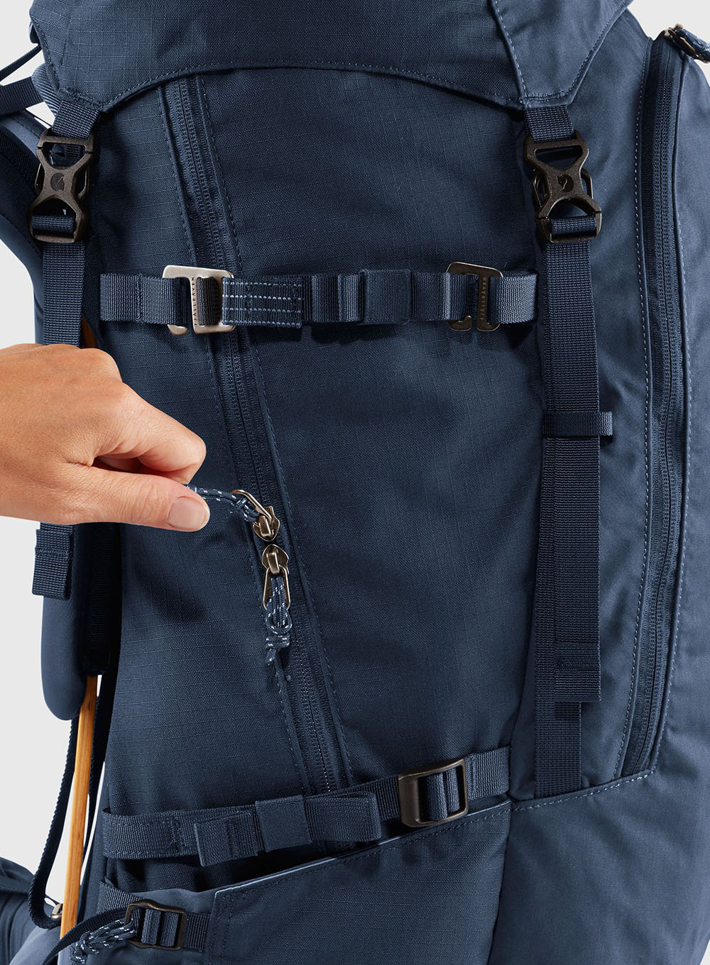 • Uchwyt na czekan lub kijki trekkingowe, Rozszerzalna kieszeń boczna, Boczne paski kompresyjne