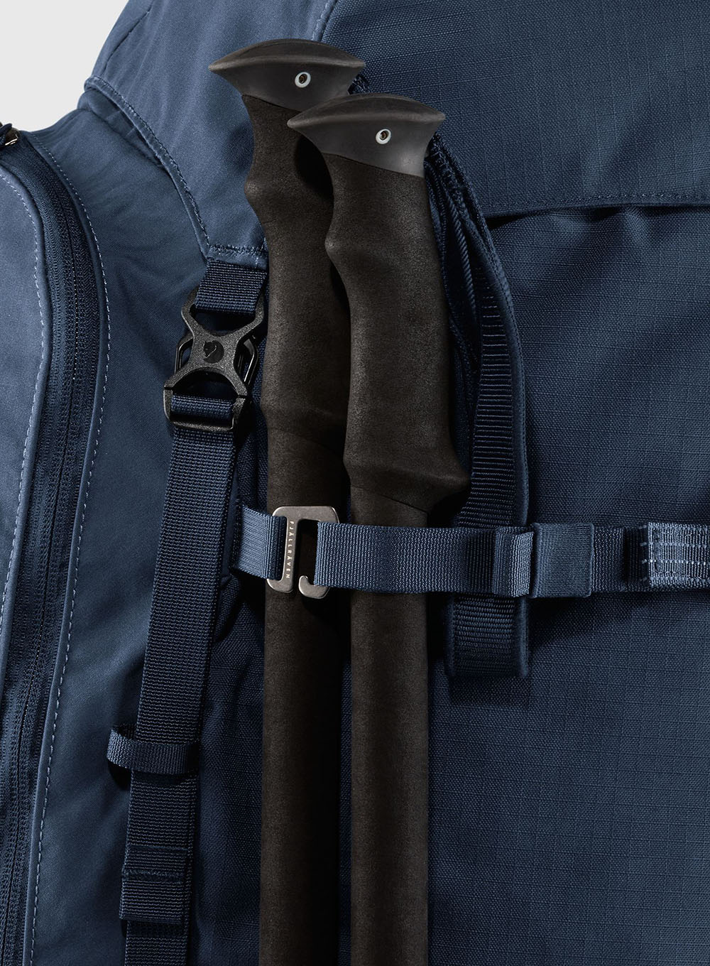 - Uchwyt na czekan lub kijki trekkingowe, Rozszerzalna kieszeń boczna, Boczne paski kompresyjne