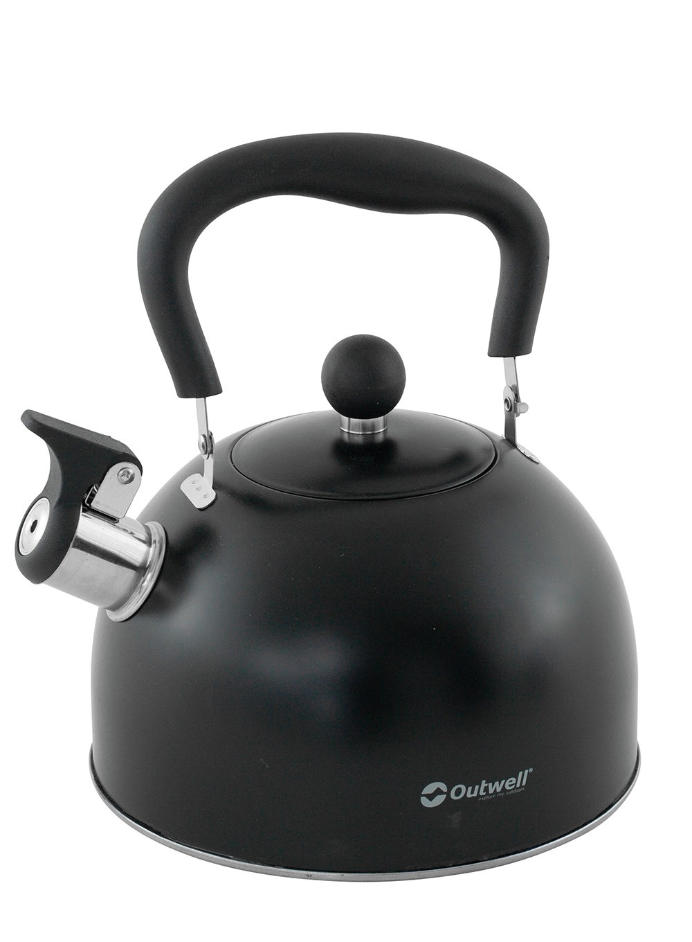 Stalowy czajnik Outwell Tea Break LUX Kettle L o pojemności 2,2 l nadaje się do użytku na różnych kuchenkach, w tym płycie indukcyjnej.