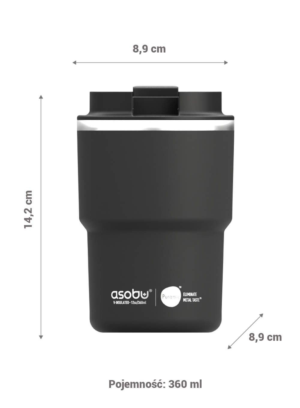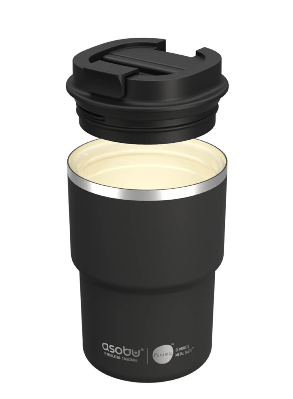 Termiczny kubek do kawy Asobu Coffee Express ma wszystkie zalety izolowanego kubka, ale bez metalicznego posmaku stali nierdzewnej, który zakłócałby doskonały smak kawy. Gładka powłoka ceramiczna Puramic zachowuje smak napoju, a izolowana próżniowo obudowa ze stali nierdzewnej utrzymuje napoje gorące przez cały dzień.