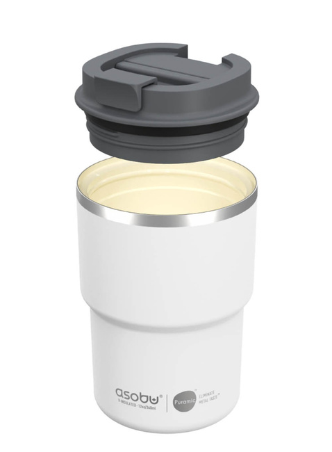 Termiczny kubek do kawy Asobu Coffee Express ma wszystkie zalety izolowanego kubka, ale bez metalicznego posmaku stali nierdzewnej, który zakłócałby doskonały smak kawy. Gładka powłoka ceramiczna Puramic zachowuje smak napoju, a izolowana próżniowo obudowa ze stali nierdzewnej utrzymuje napoje gorące przez cały dzień.