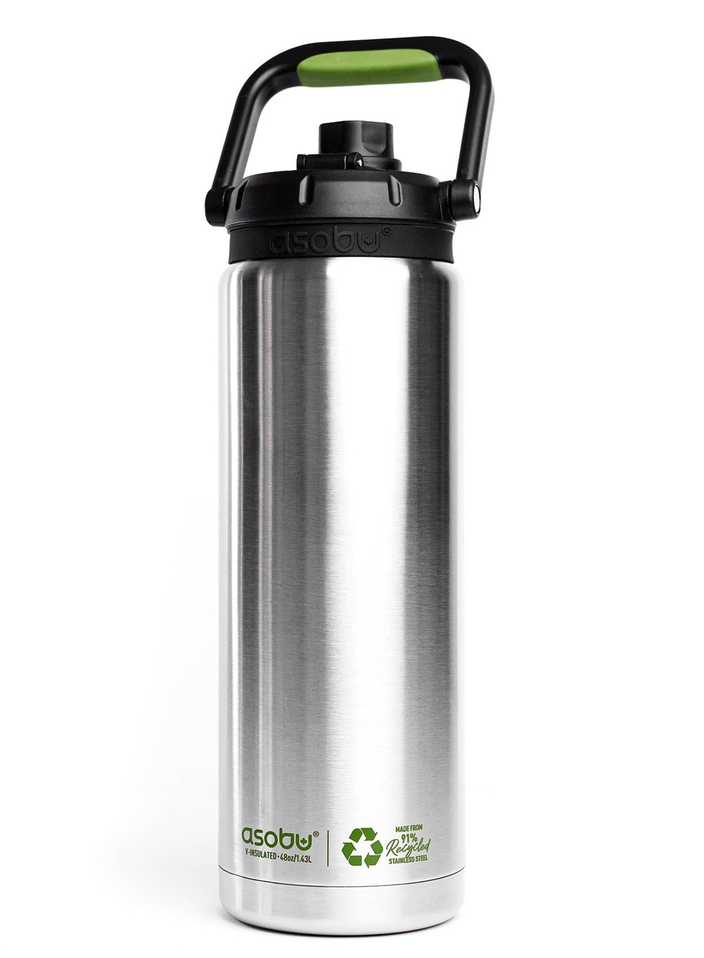 Duża butelka termiczna Asobu Canyon Jug 1,43 l ze stali nierdzewnej ze słomka do wygodnego picia bez przechylania.