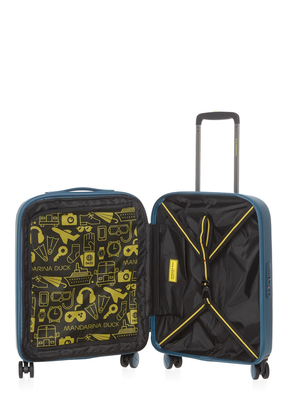 Walizka kabinowa Mandarina Duck Logoduck+ EXP ma 4 podwójne wielokierunkowe koła, które zapewniają płynne poruszanie się. Można ją łatwo prowadzić obok siebie lub za sobą dzięki podwójnemu uchwytowi z regulacją wysokości. Górny uchwyt ułatwia noszenie, kiedy masz do pokonania kilku schodów. Zamek szyfrowy TSA i zintegrowany uchwyt adresowy ograniczają ryzyko utraty lub ewentualnych prób włamania.