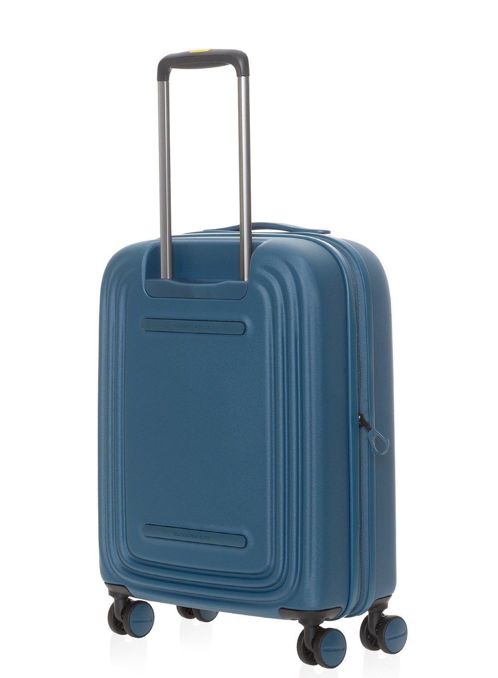 Mała poszerzana walizka podręczna Mandarina Duck Logoduck+ EXP z poliwęglanu jest kompaktowa i ma opływowy design, z zaokrąglonymi krawędziami. Jest wyposażona w 4 podwójne koła w dopasowanym kolorze, z dostosowaną gumową ochronę przed uderzeniami, które zapewniają lepszą mobilność. Górny uchwyt przylega płasko, aby nie zwiększać ogólnych rozmiarów bagażu podręcznego.