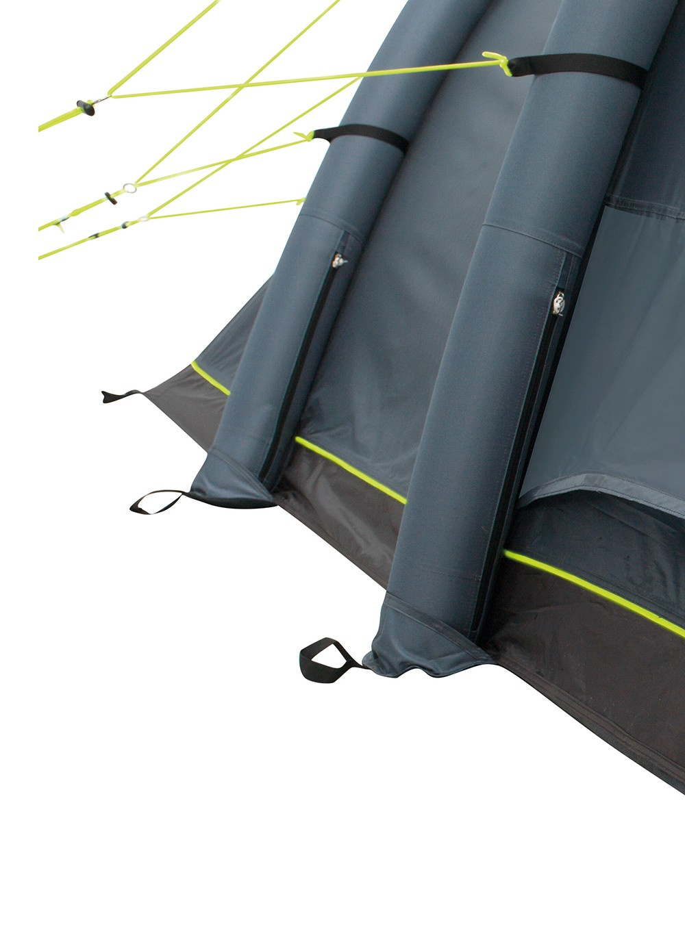 - Outwell Rigid Air System - zawiera pojedyncze rurki, które są oddzielnie nadmuchiwane i opróżniane przez łatwo dostępne zewnętrzne zawory