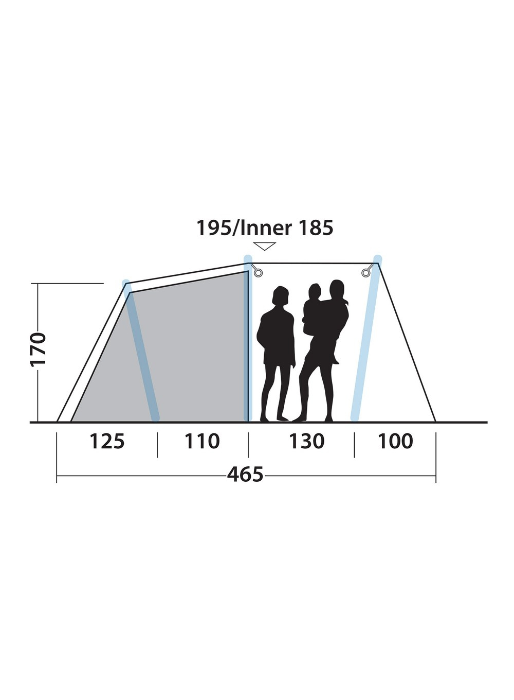 - Rodzaj namiotu: dwupokojowy namiot tunelowy