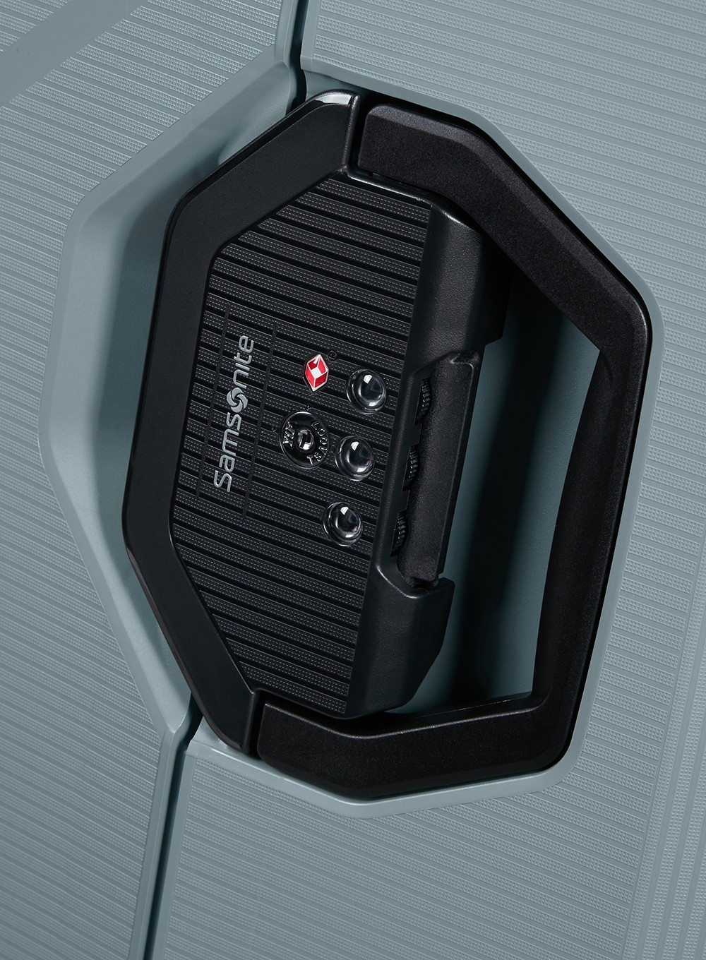 Dzięki zintegrowanemu zamkowi TSA Twoje rzeczy są zawsze bezpieczne w podróży. 3-punktowa blokada jest bezpieczna i łatwa w użyciu. Solidna i wytrzymała konstrukcja dzięki zastosowaniu samowzmacniającej się konstrukcji i użyciu wysokiej jakości polipropylenu z recyklingu.