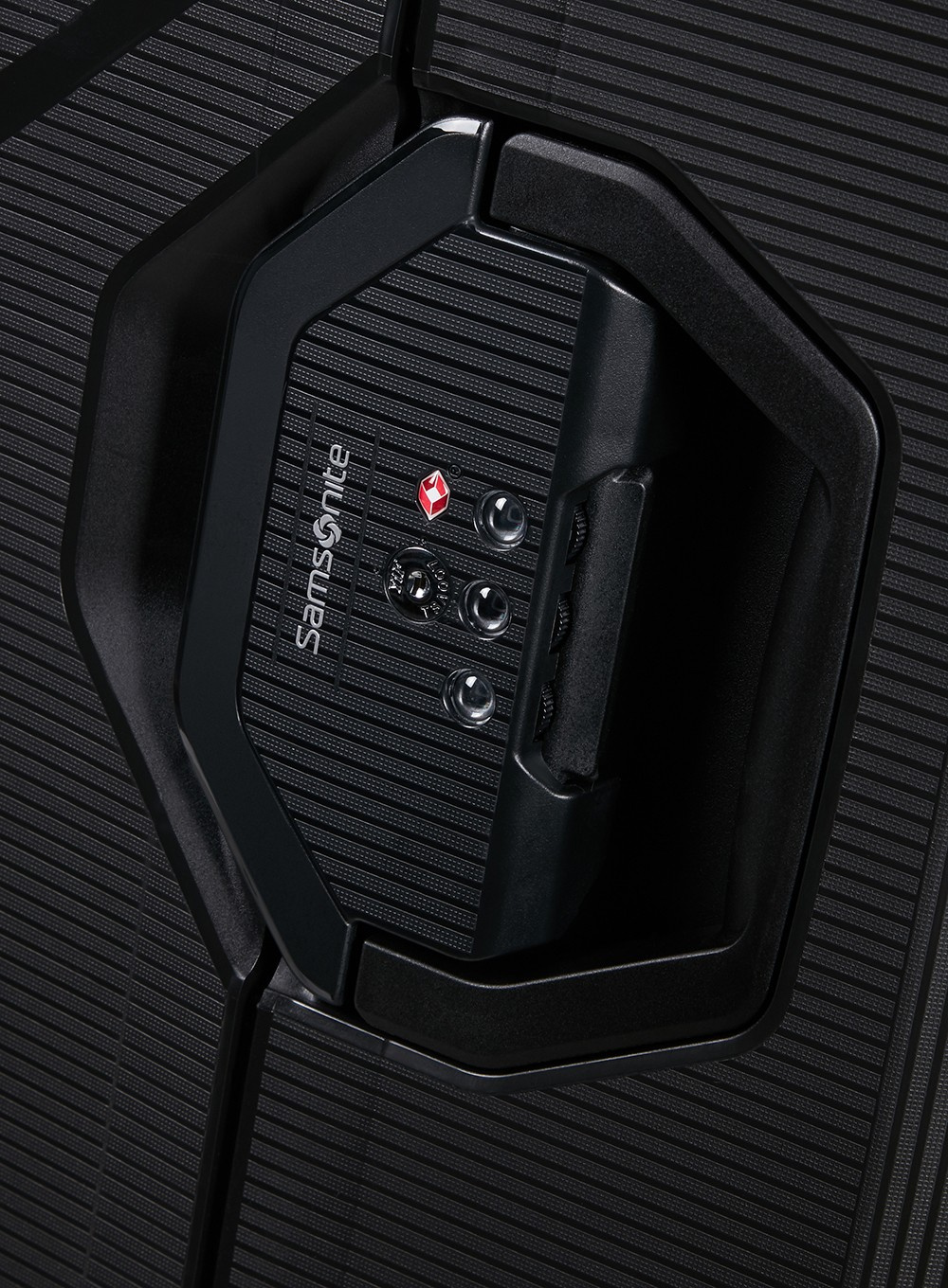 Dzięki zintegrowanemu zamkowi TSA Twoje rzeczy są zawsze bezpieczne w podróży. 3-punktowa blokada jest bezpieczna i łatwa w użyciu. Solidna i wytrzymała konstrukcja dzięki zastosowaniu samowzmacniającej się konstrukcji i użyciu wysokiej jakości polipropylenu z recyklingu.