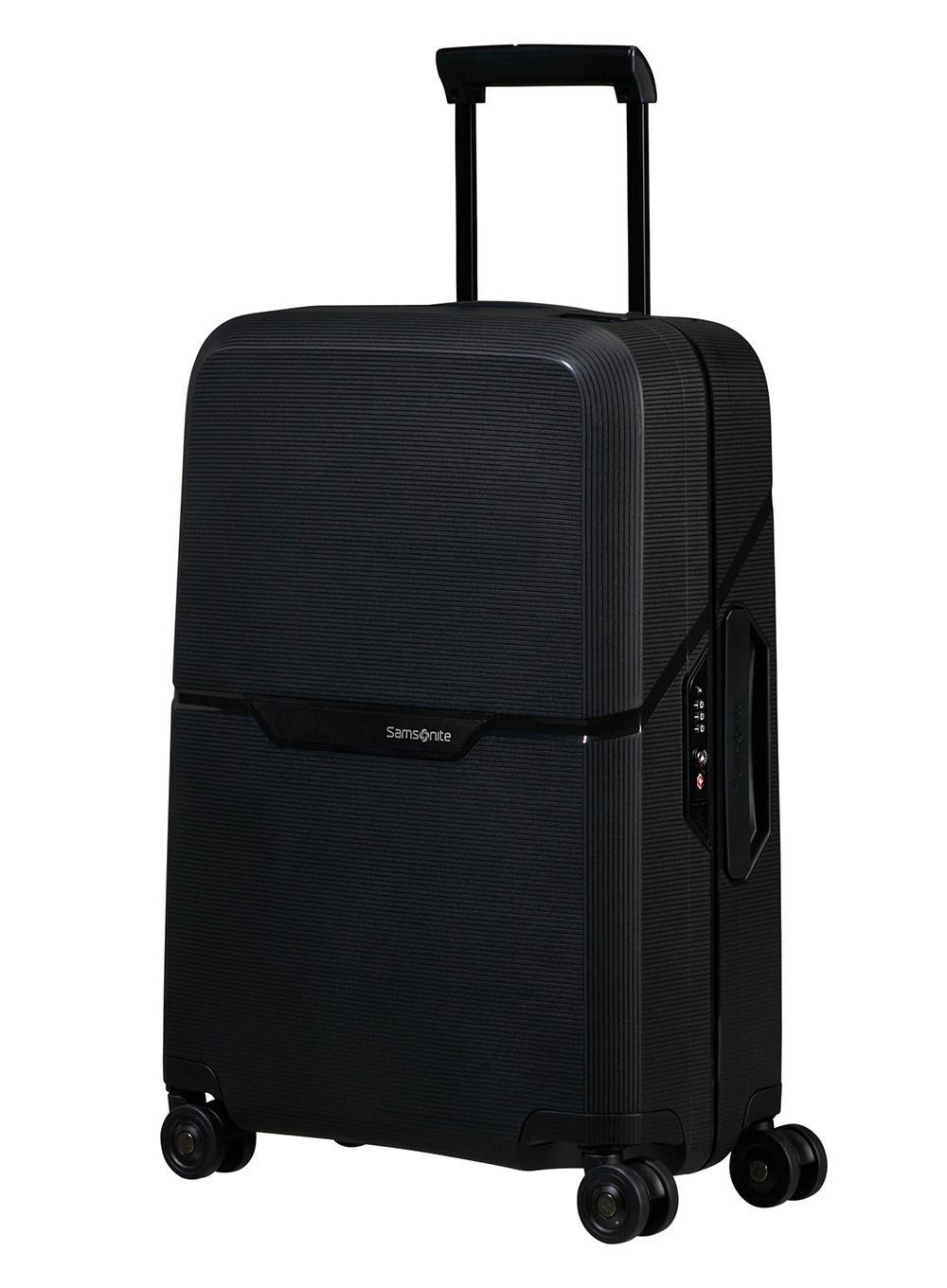 Walizka kabinowa Samsonite Magnum Eco to lekki, ekologiczny model, którego produkcja jest bardziej zrównoważona i zaangażowana w dbanie o środowisko naturalne.