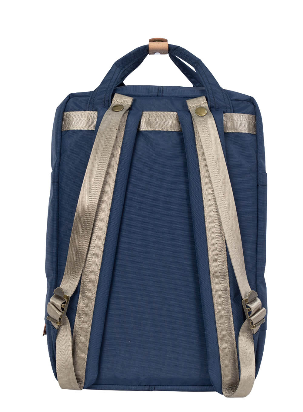 Szelki plecaka miejskiego Doughnut Macaroon Jungle II wykonane są z grubego materiału, który zapewnia wygodę nawet przy dłuższym użytkowaniu. Podwójne górne uchwyty można spiąć ze sobą tworząc praktyczny uchwyt do noszenia plecaka w dłoni.
