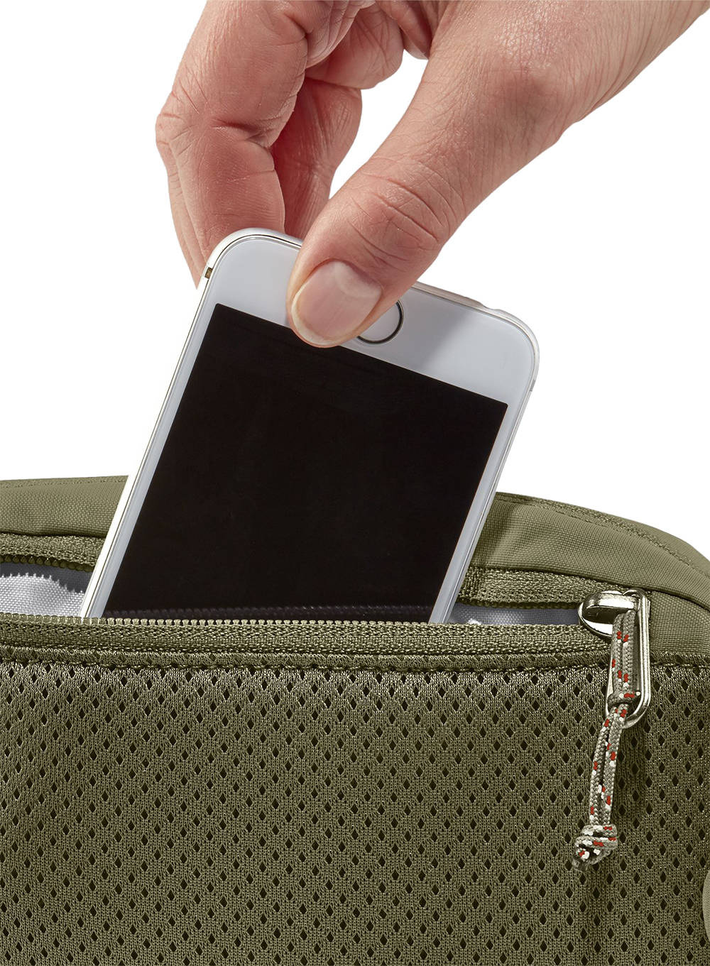 Saszetka na biodra Fjallraven High Coast Hip Pack 1,5 l posiada bezpieczną kieszeń na karty i dokumenty i wentylacyjną siatkę z tyłu. Główna komora zapinana na zamek ma otwartą siateczkową kieszeń i zaczep na klucze. Biodrówkę można spakować do własnej kieszeni, dzięki czemu zajmuje mało miejsca w torbie lub plecaku, gdy nie jest używana.